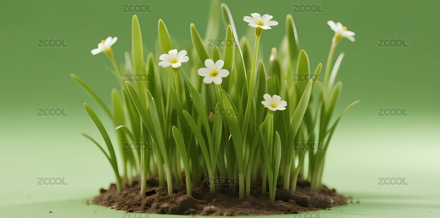 微型花丛与绿叶
