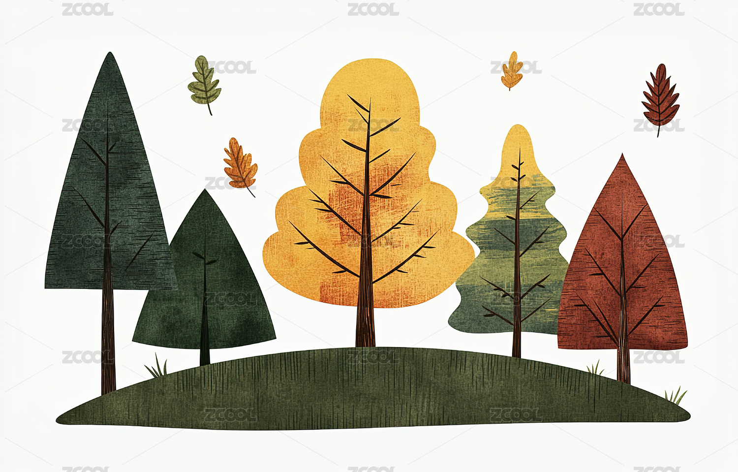 不同种类树木的卡通插画
