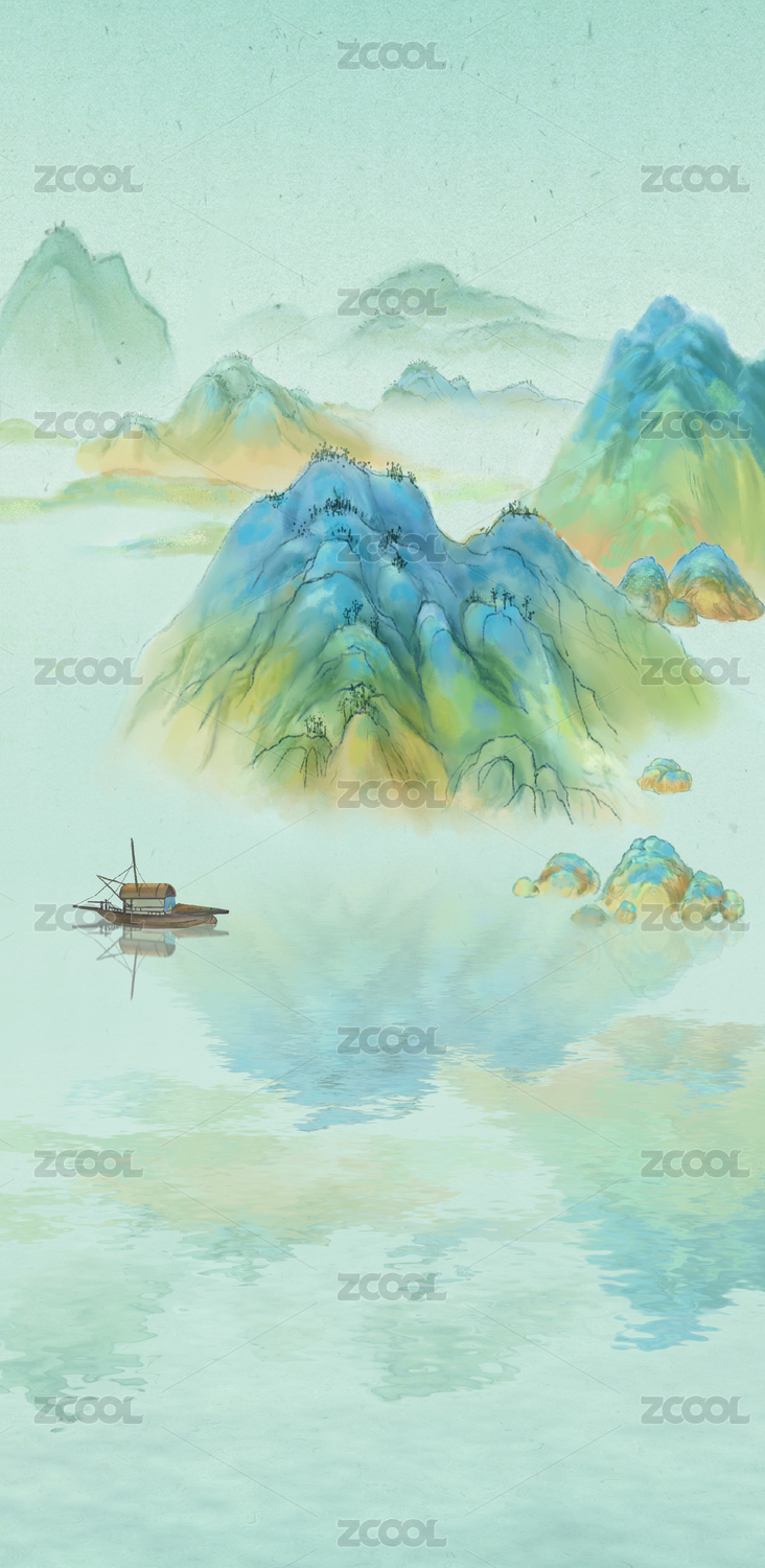 水墨画,风景,城市,立春,春分,唯美,中国风,国潮,扁平,传统文化
