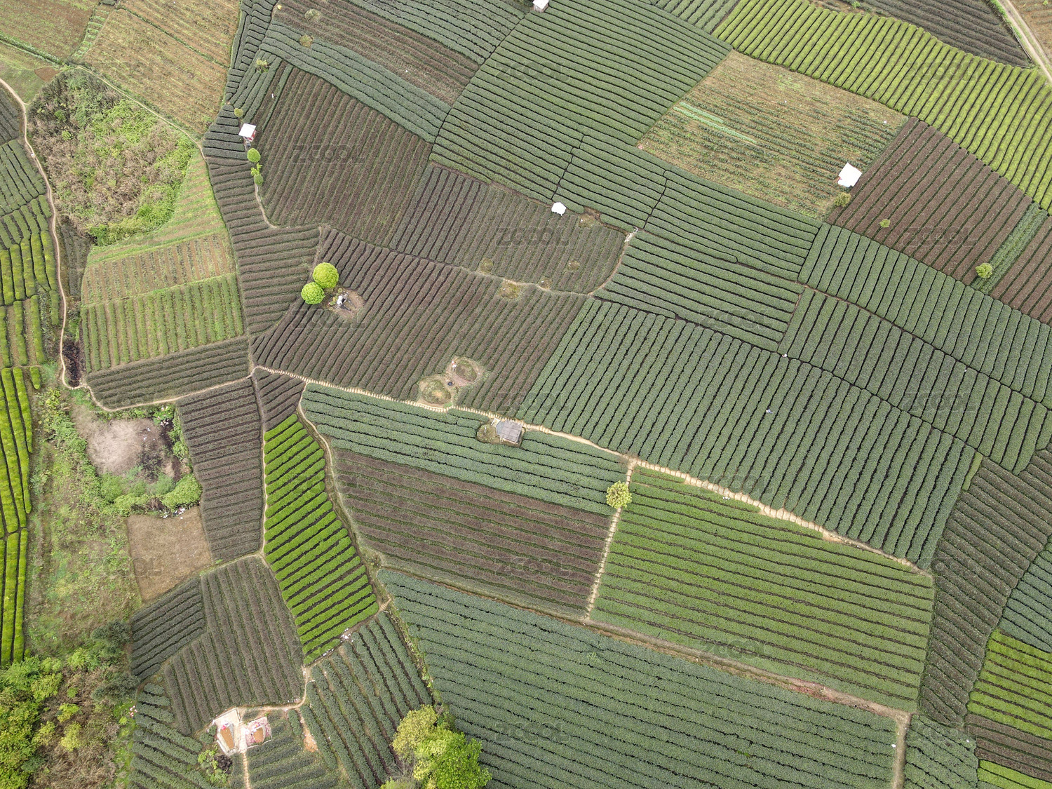 俯拍杭州龙坞茶园 茶田 西湖龙井