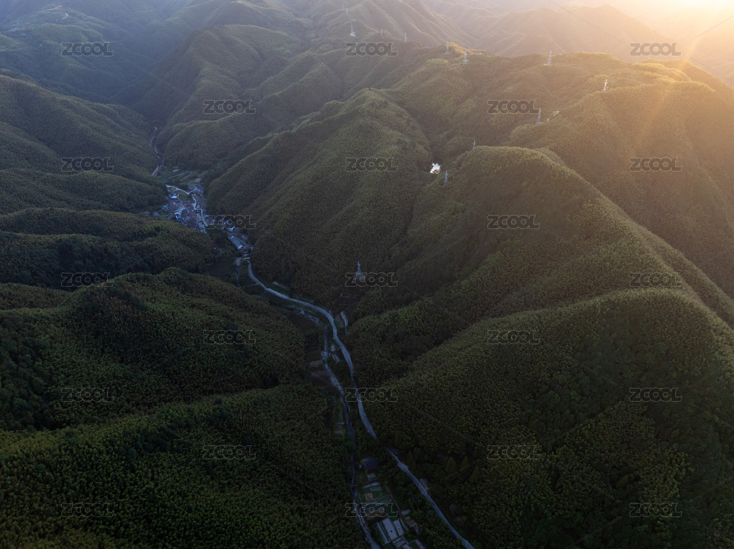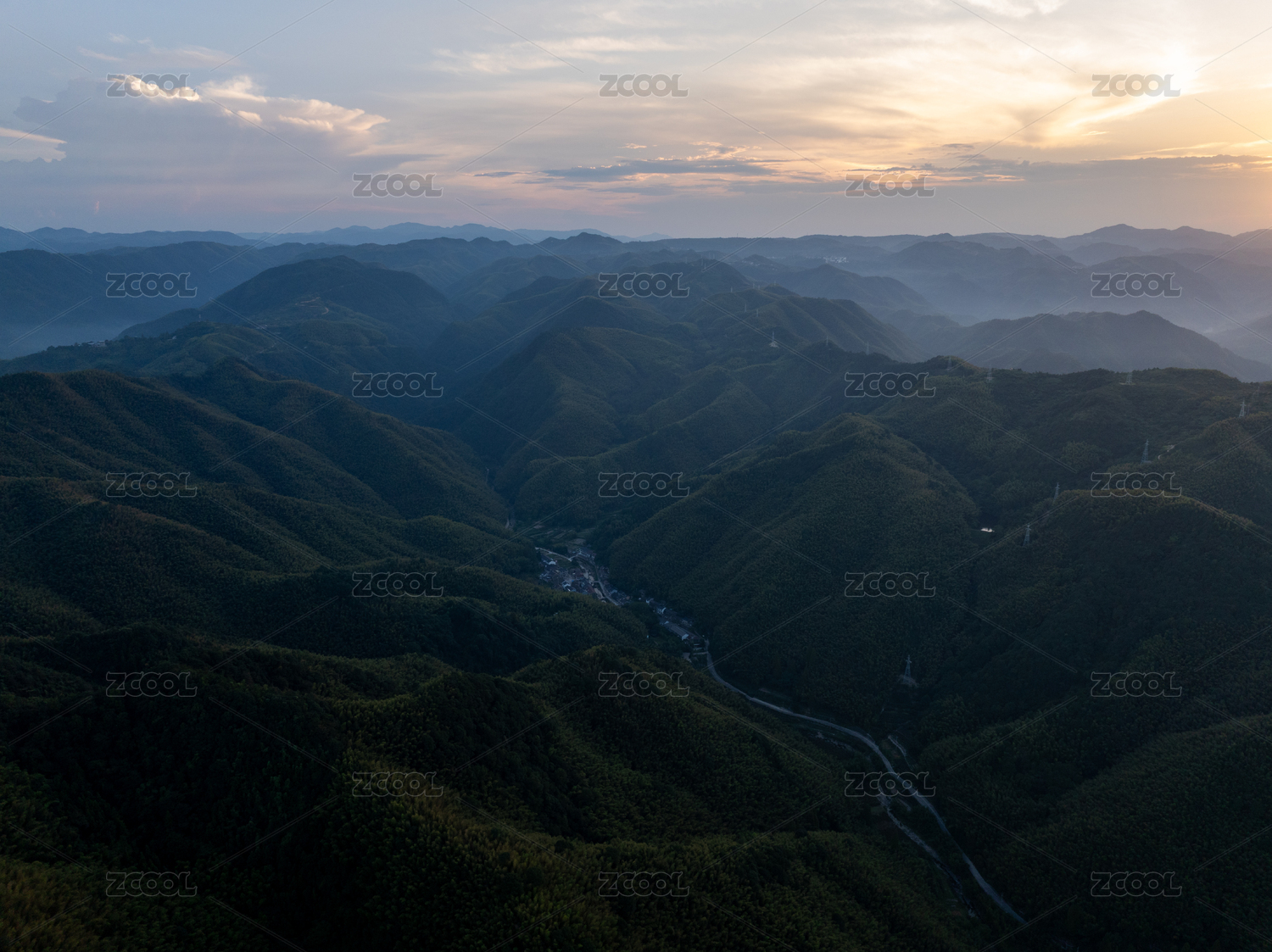 航拍黄昏的浙江湖州德清山谷