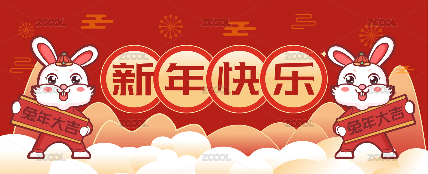 兔年春节财源广进招财进宝横幅矢量插画海报