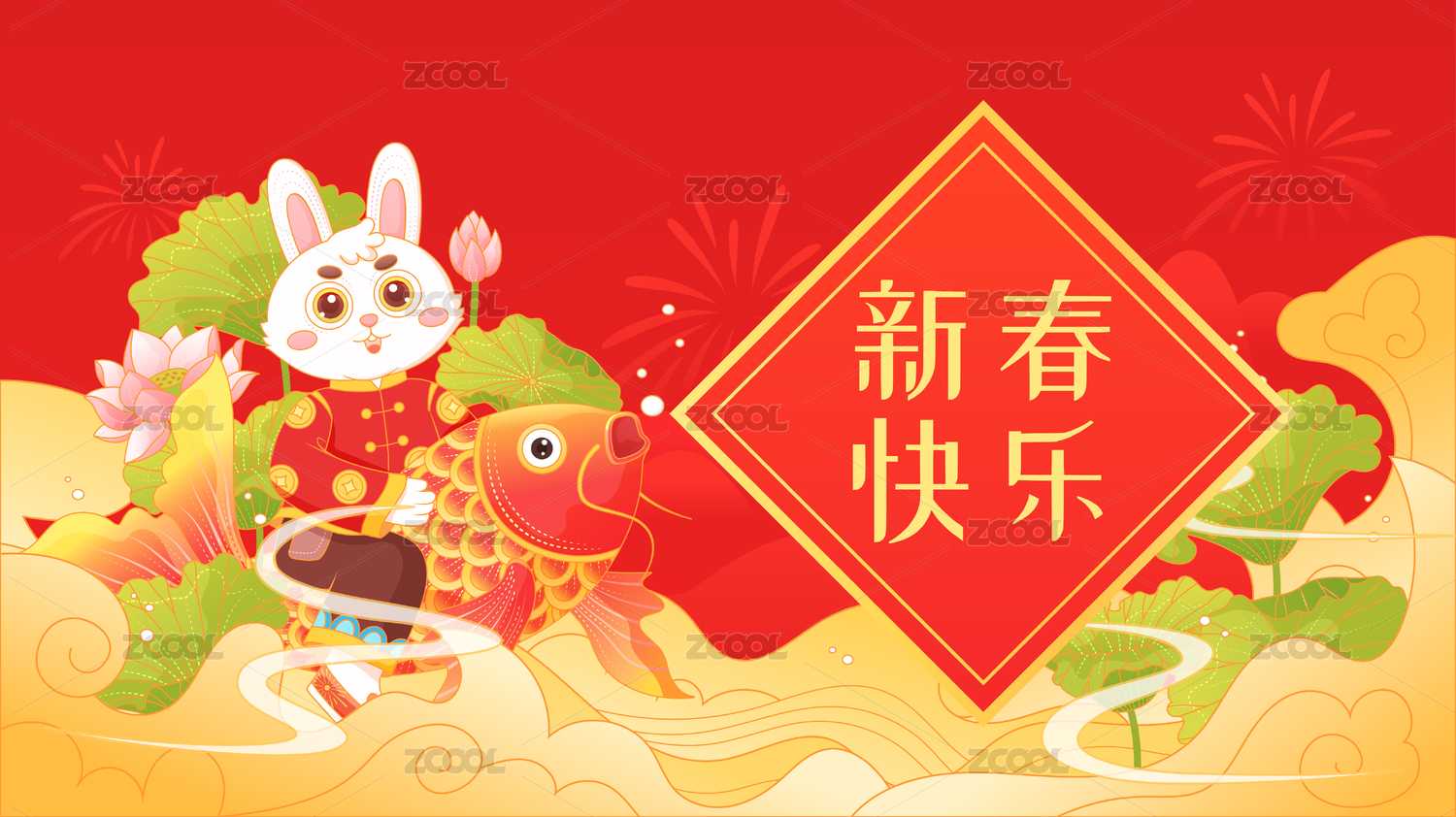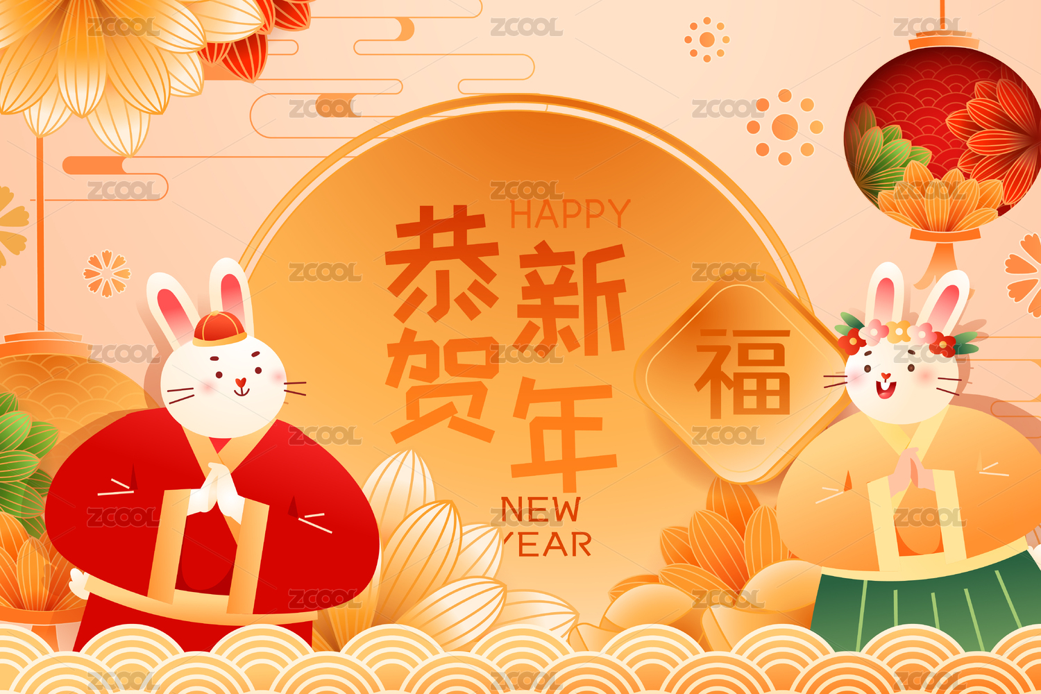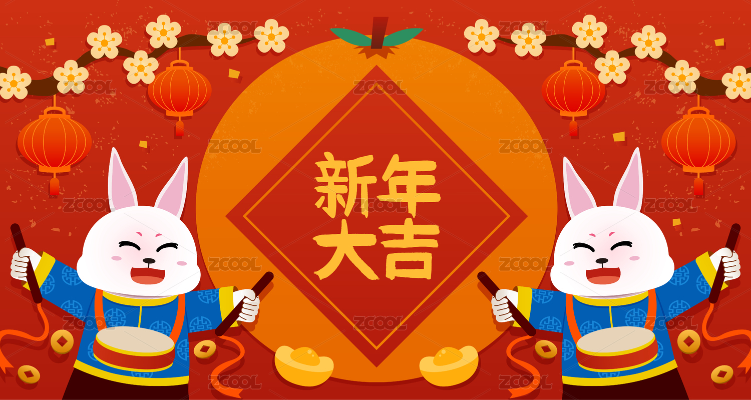 矢量,春节,新年,传统节日,兔年,2023年,兔子,十二生肖,红色,海报