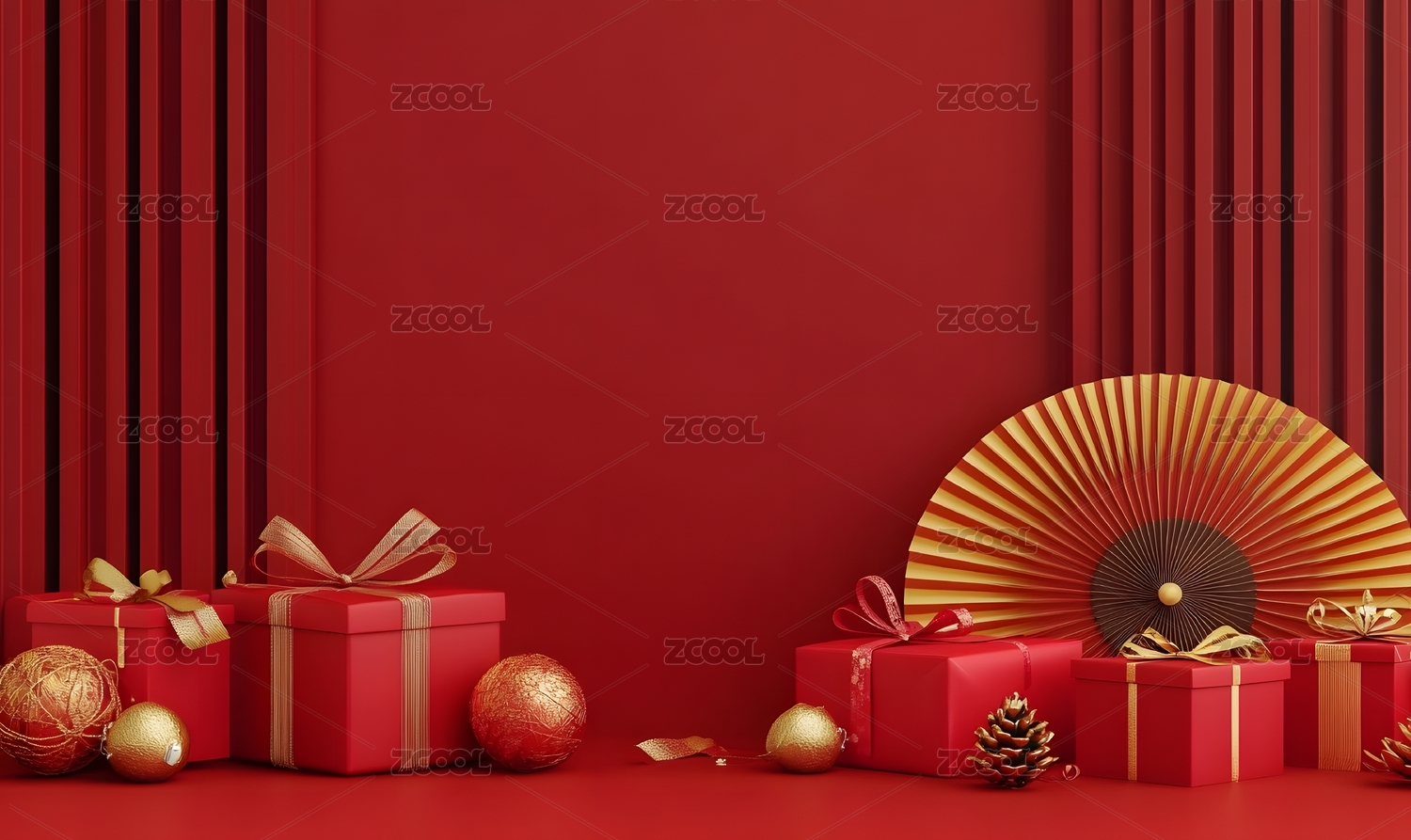 无人,背景,红色,节日,插画,新年,三维图形,春节,产品展台,人造空间