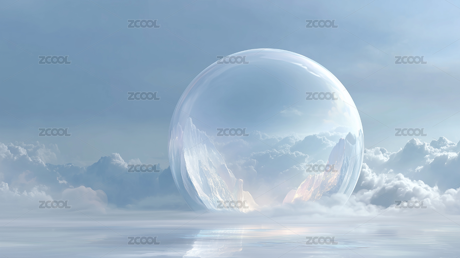 科幻星球的积雪表面漂浮小行星3D立体插画