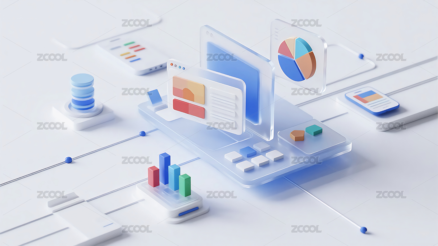透明金融数据图表立体展示场景