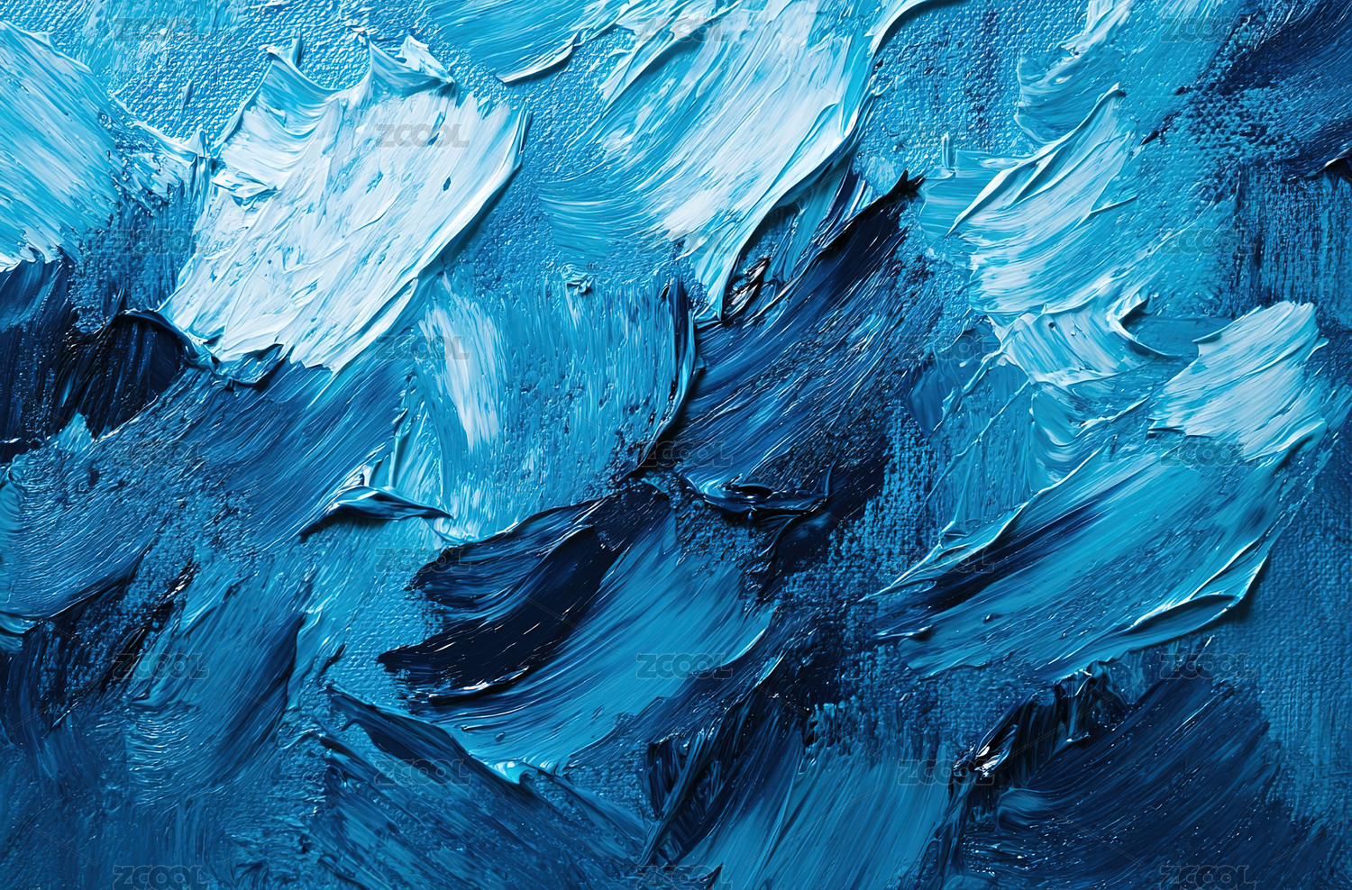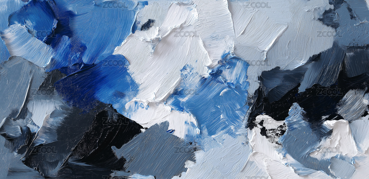 蓝灰白黑颜料厚涂交织呈现抽象艺术的视觉冲