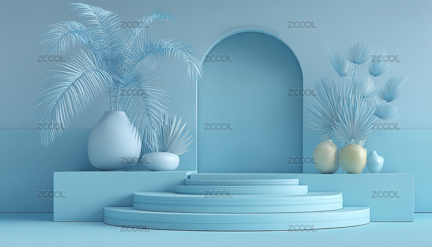 蓝色拱门阶梯与棕榈树景观