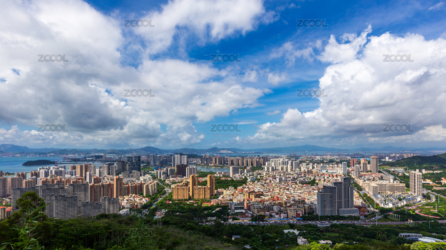 海南三亚临春岭深林公园山顶俯瞰城市建筑