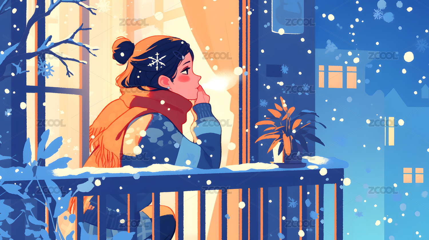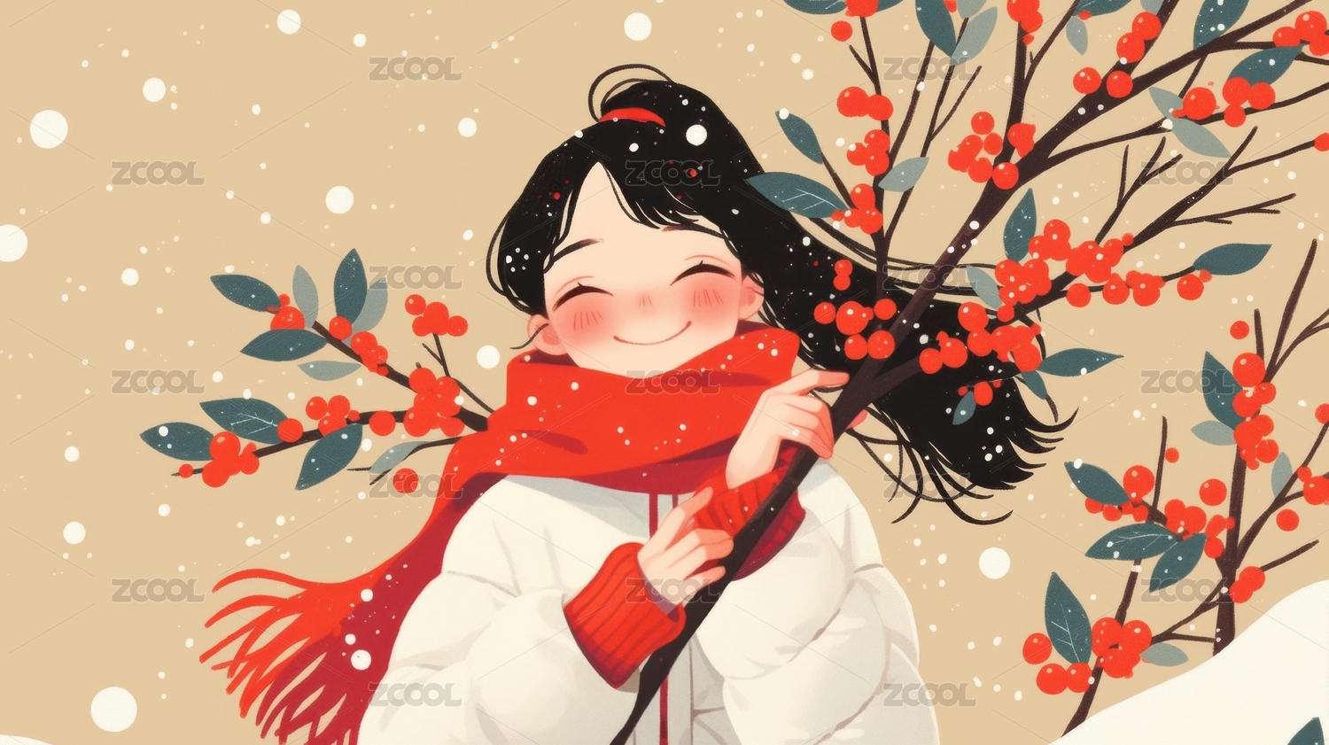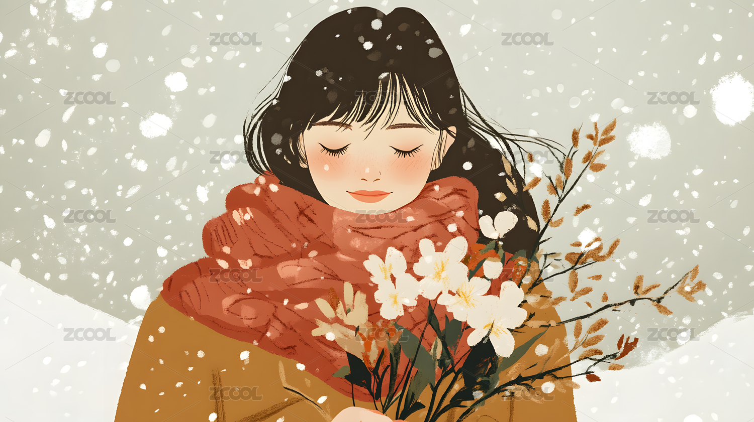 女孩,村庄,雪天,冬天,雪,飘雪,大雪,小雪,节气,唯美