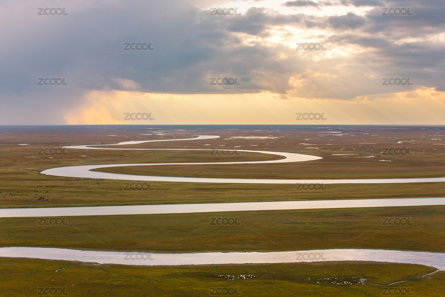 中国新疆开都河九曲十八弯,巴音布鲁克草原