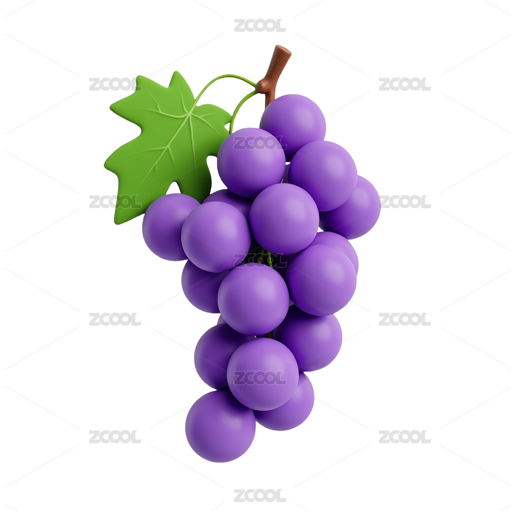 3D紫色葡萄白色背景元素