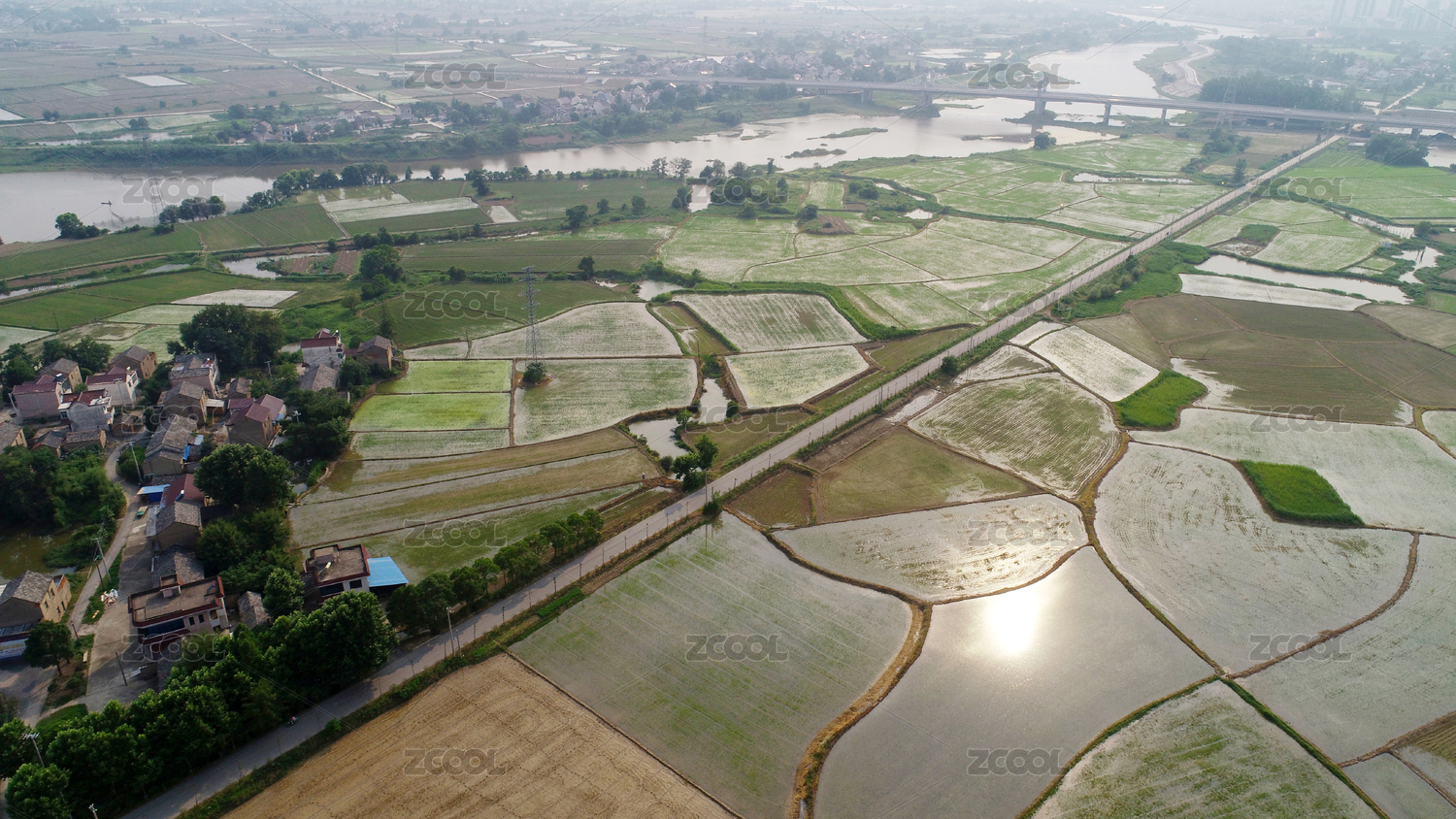 航拍江苏溧阳市社渚镇田园风光