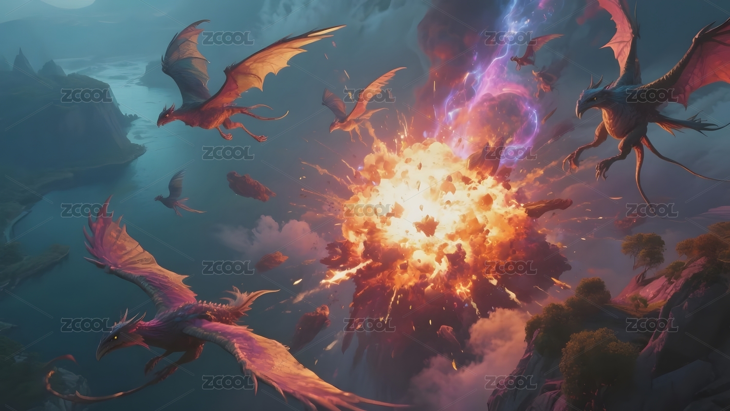 龙群飞舞爆炸光芒