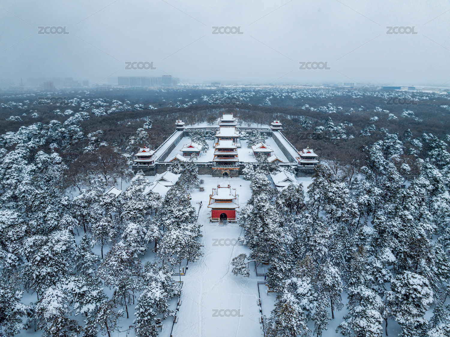 辽宁沈阳北陵公园清昭陵大雪中古建筑航拍