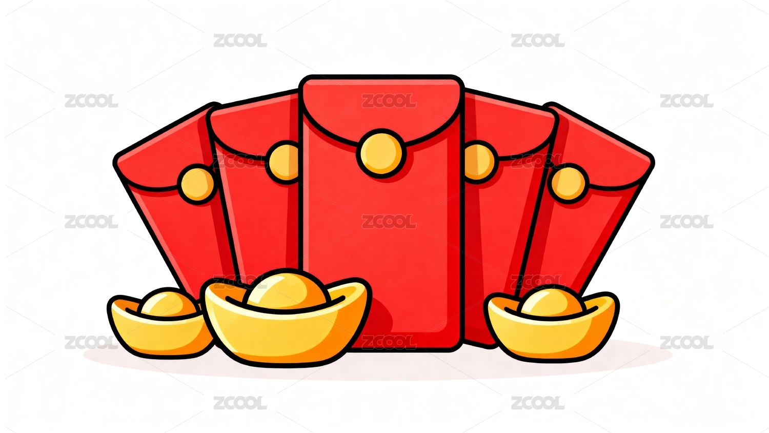 卡通矢量中国风金币钱袋福袋红包手绘插画