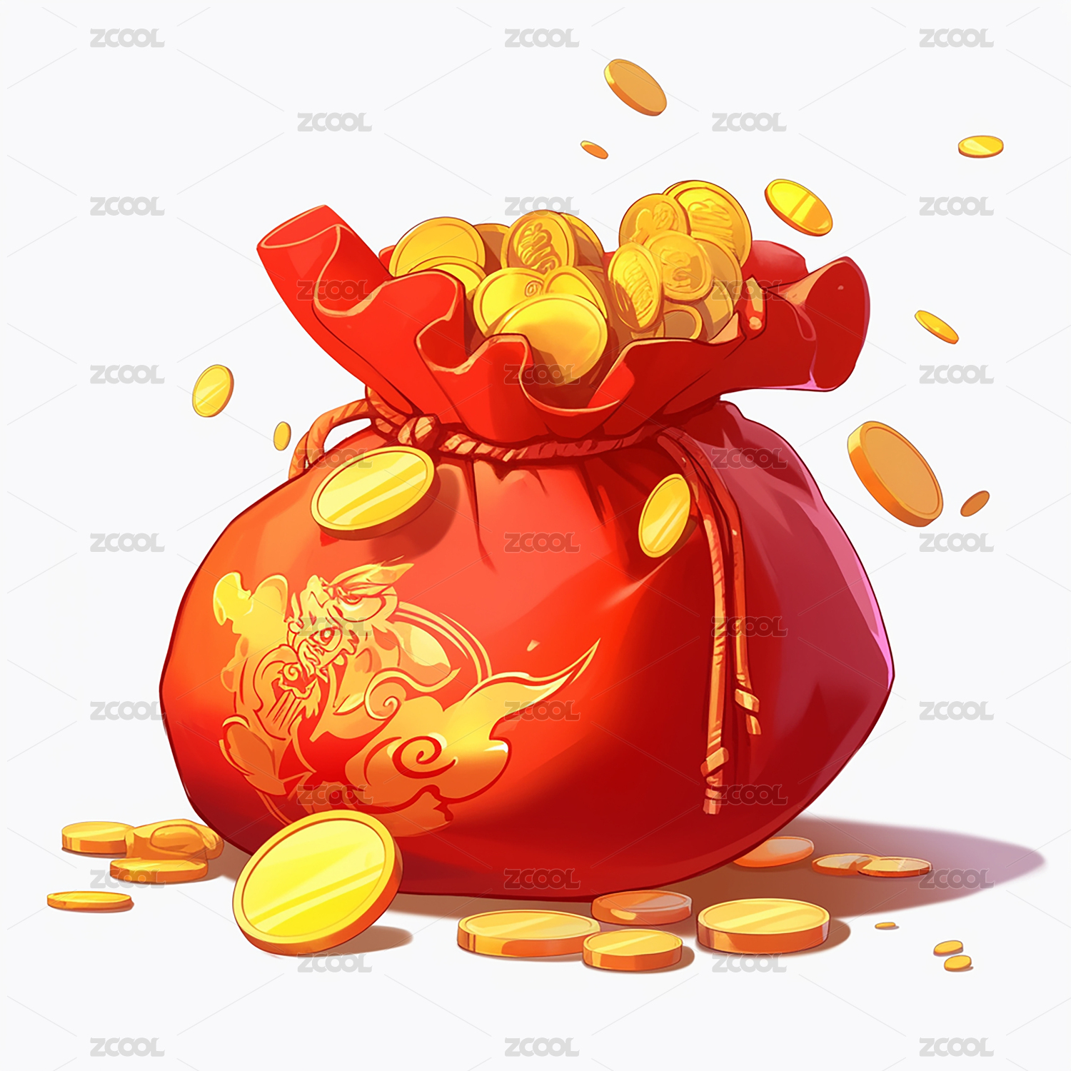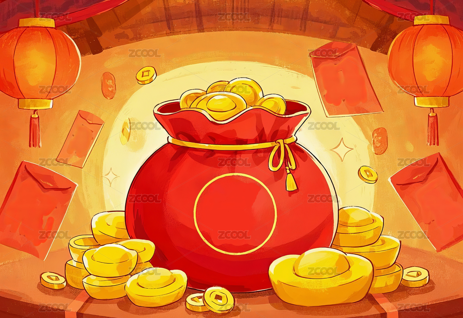 发财,钱币,钱袋,国潮,创意,插画,新年,节日,经典,创新