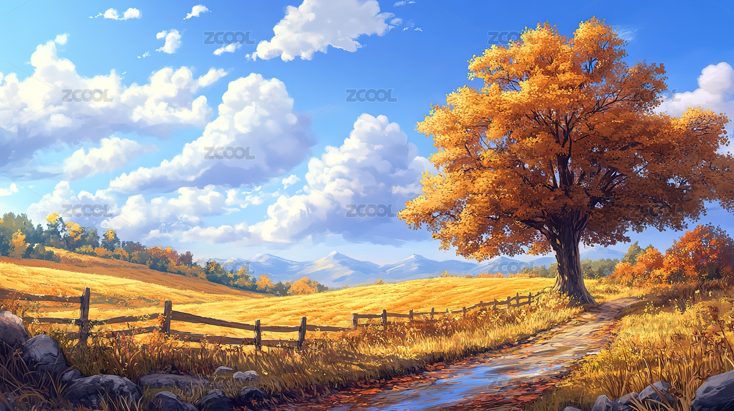 秋天,秋季,麦田,麦子,稻田,稻子,水稻,秋收,丰收,蓝天