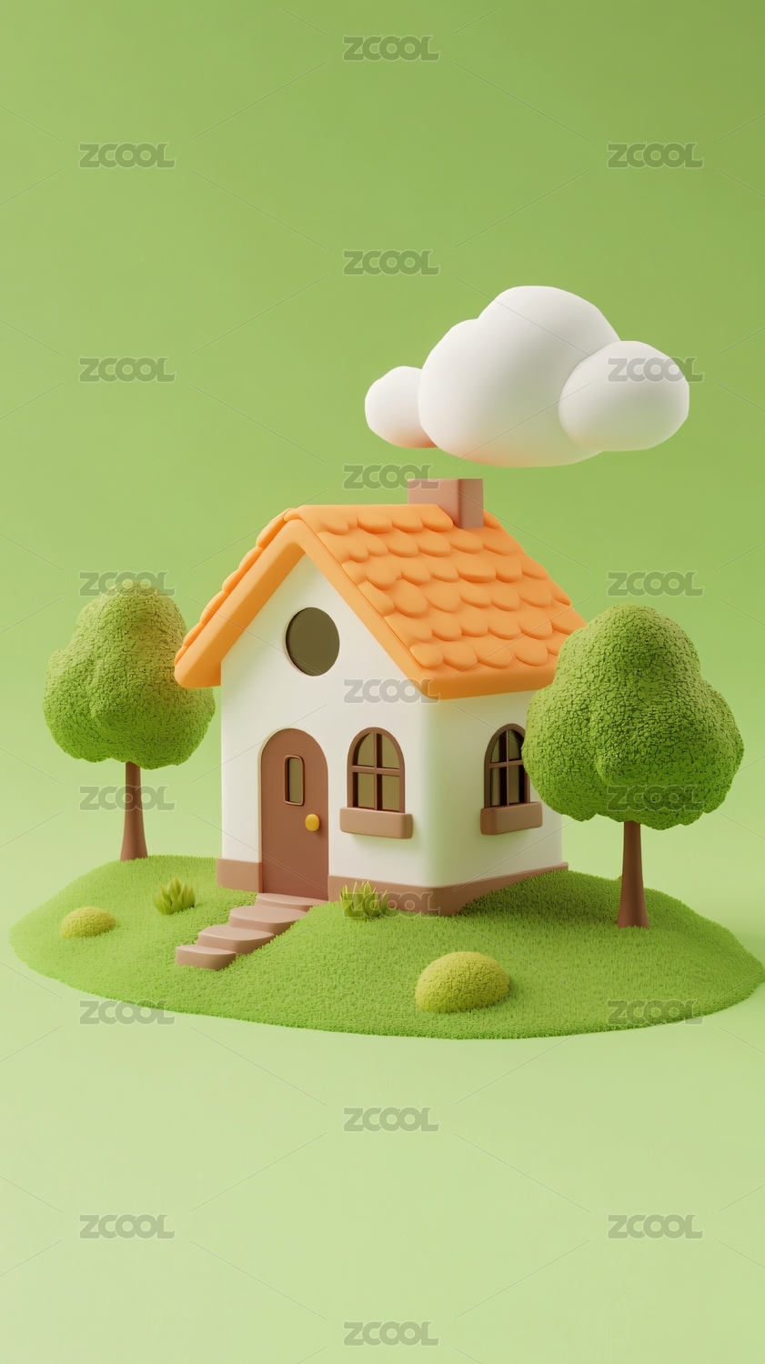 3D,背景,场景,创意,云朵,艺术,植物,概念,海报,互联网