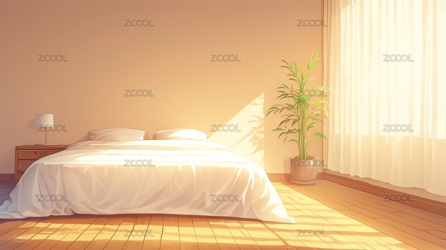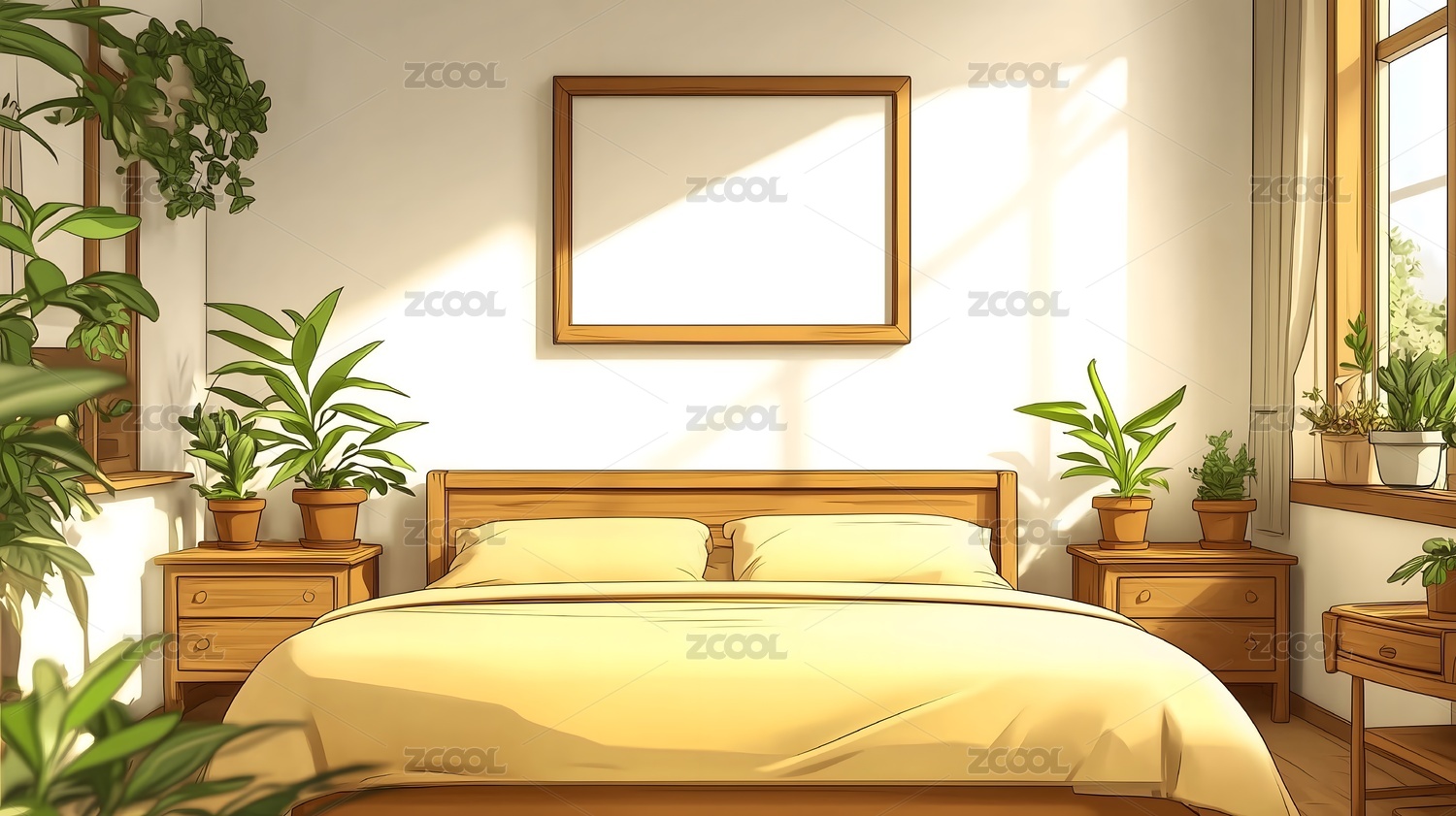 现代简约温馨卧室装饰场景插画