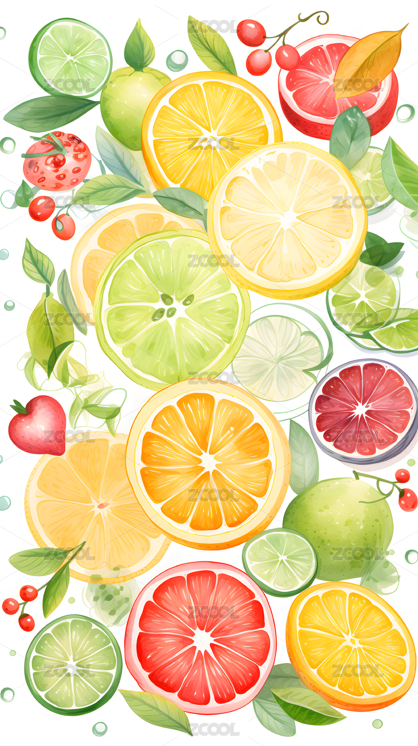 清新,复古,插画,柠檬,切开,水果,柠檬片,切片,装饰,图案