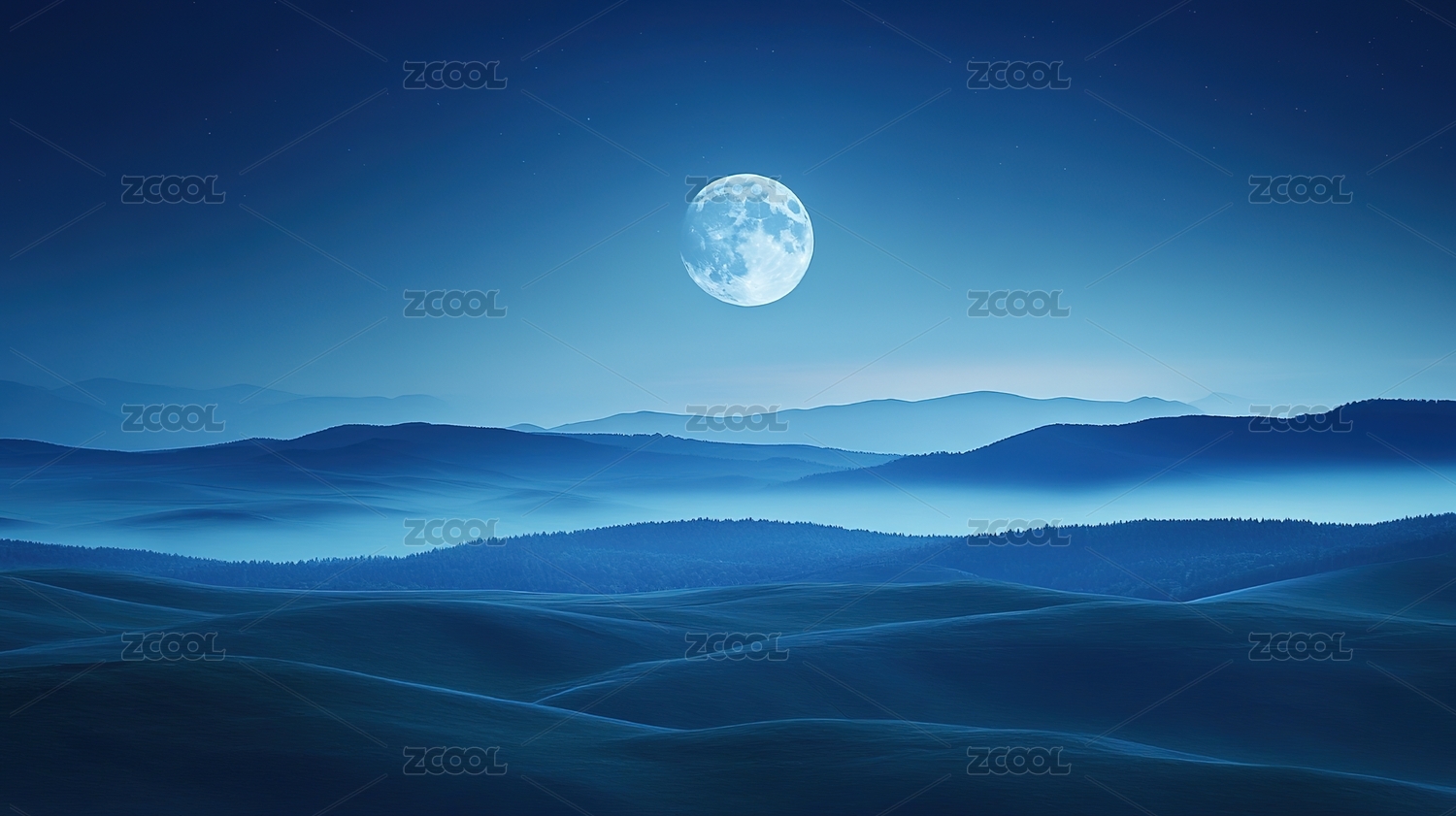 数码蓝银色沙漠山丘场景抽象图形海报背景