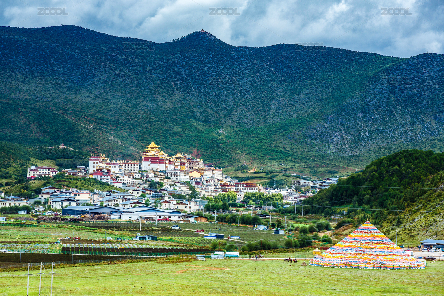 云南香格里拉的噶丹松赞林寺建筑和旅游风光