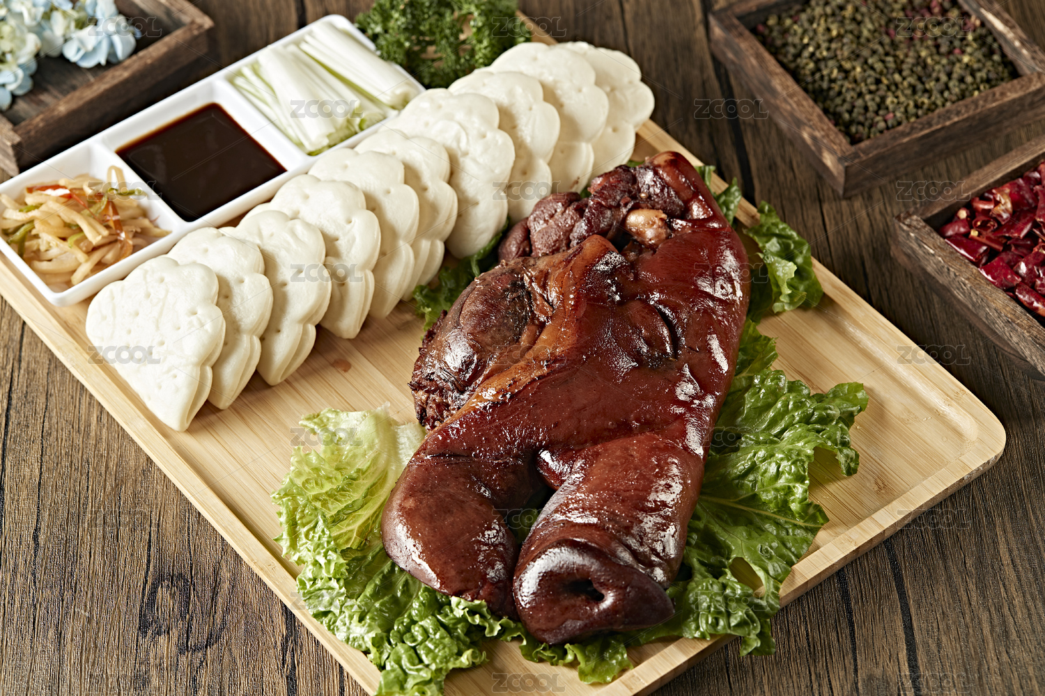 烟熏卤味猪脸猪头肉配锅盔蘸酱菜