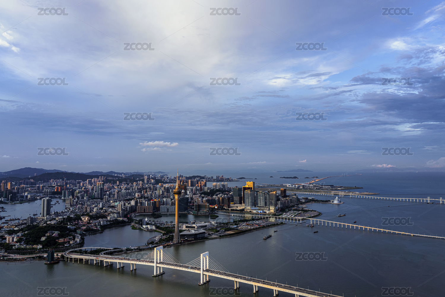 航拍中国澳门旅游塔澳门塔西湾大桥地标建筑