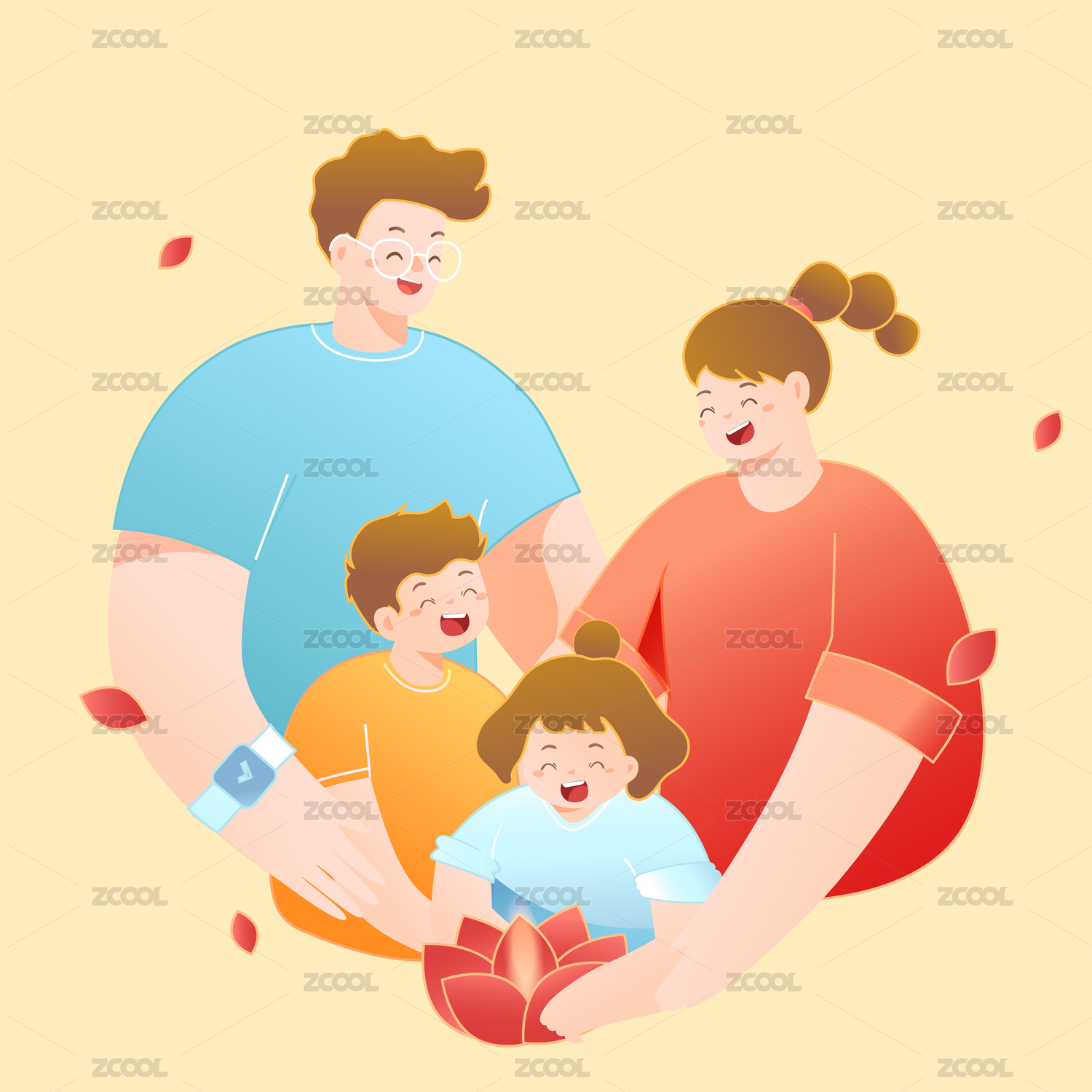 家人亲子矢量插画