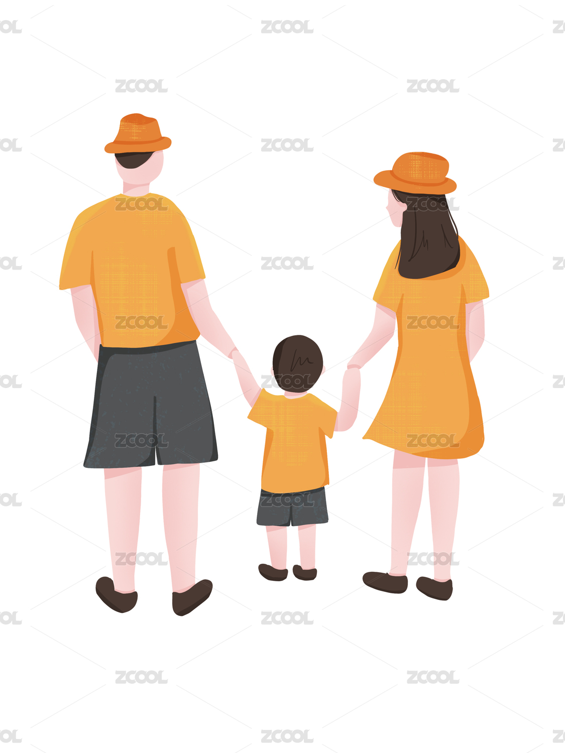 爸爸妈妈和孩子手牵手走路的背影