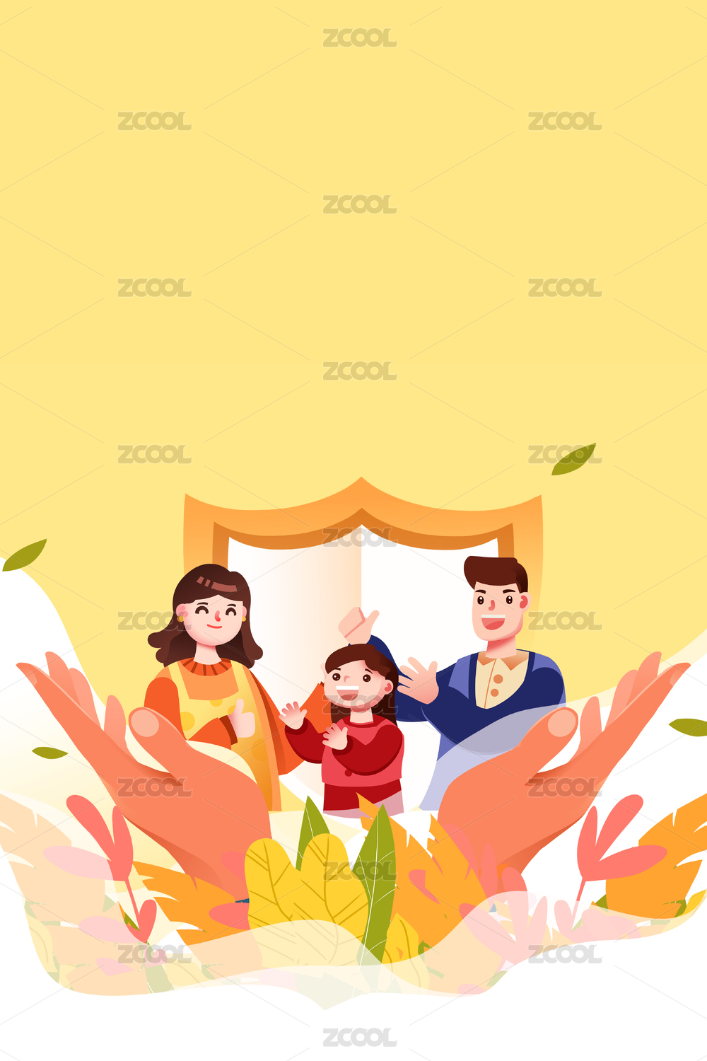全家人的健康险医疗保险体检医疗闪屏插画