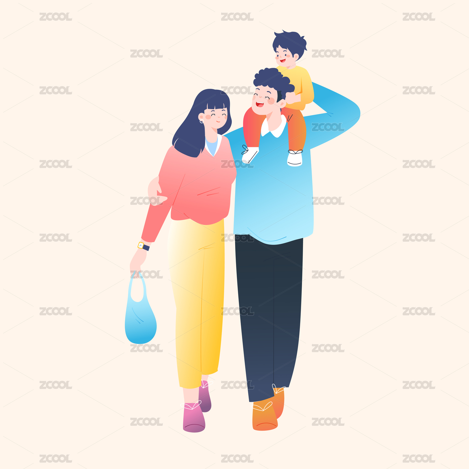 家庭游玩逛街插画