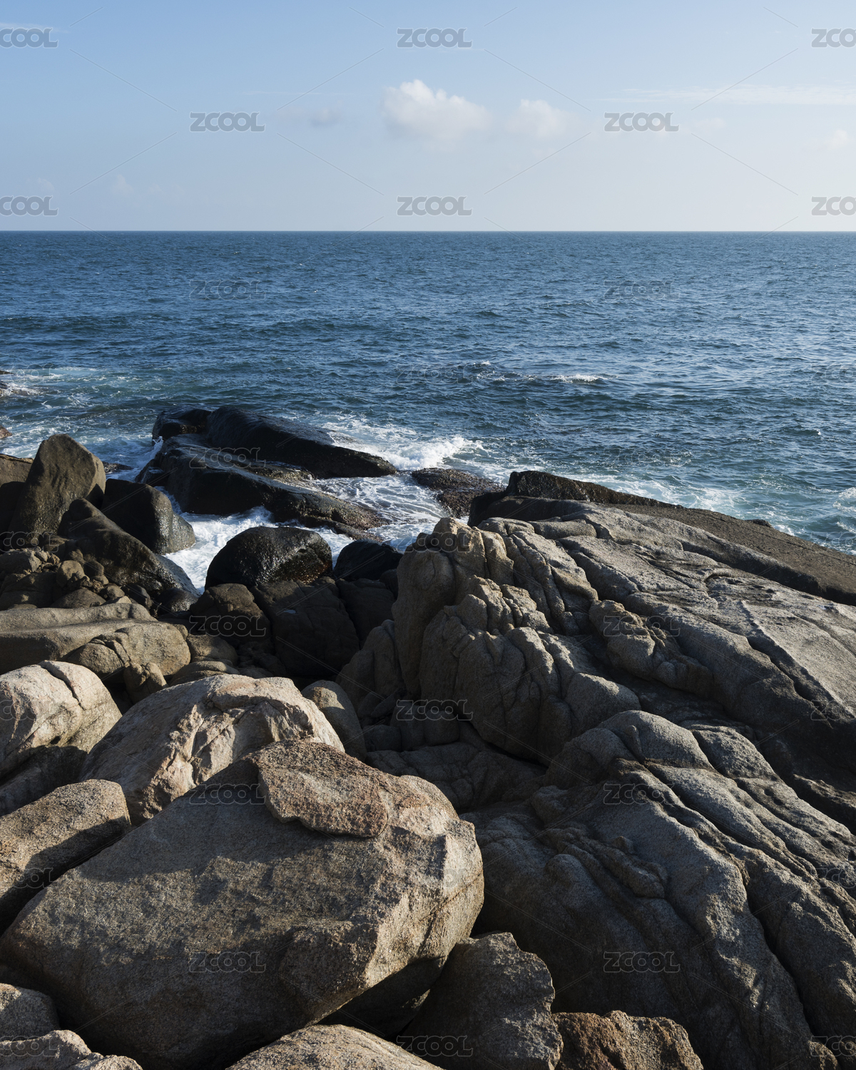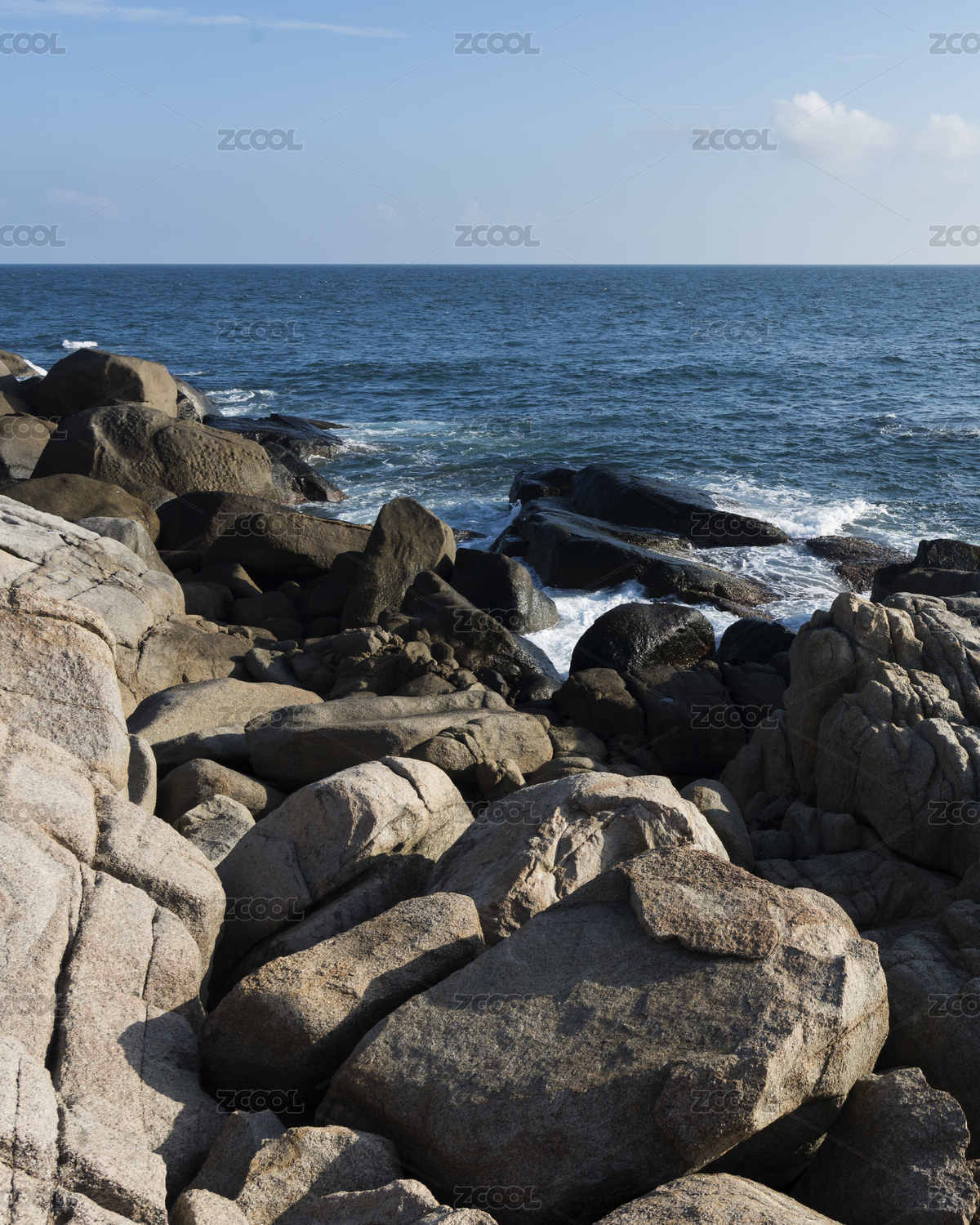 中国海南儋州峨蔓龙门山阳光下的岩石与海