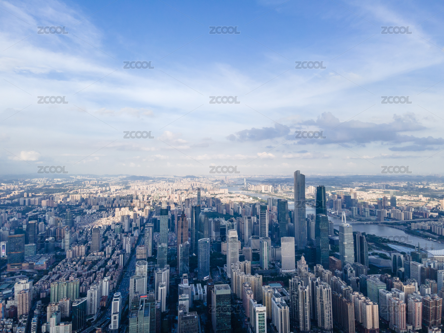 白昼晴天航拍广州琶洲CBD鸟瞰图