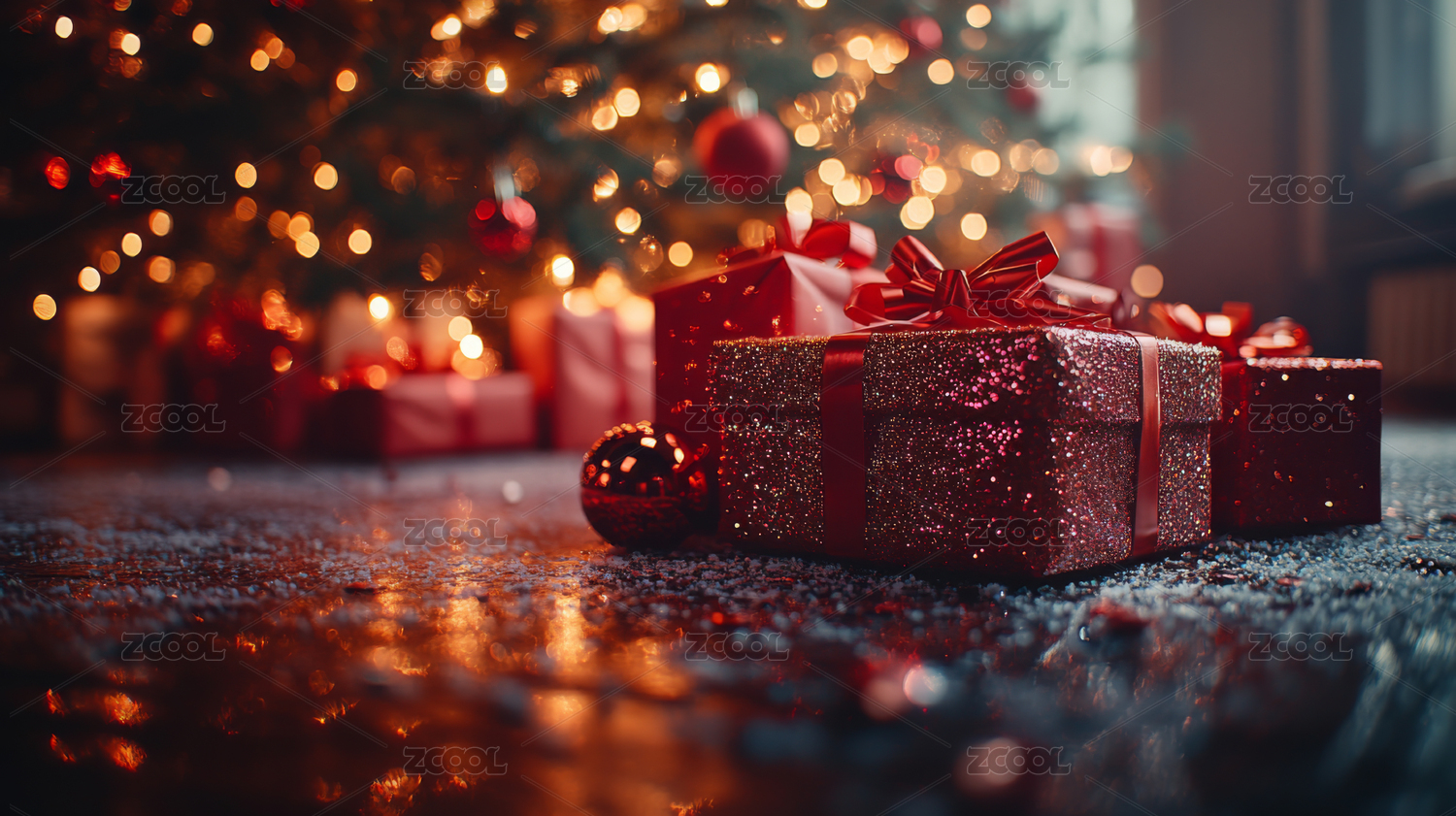 室内圣诞树和礼盒背景
