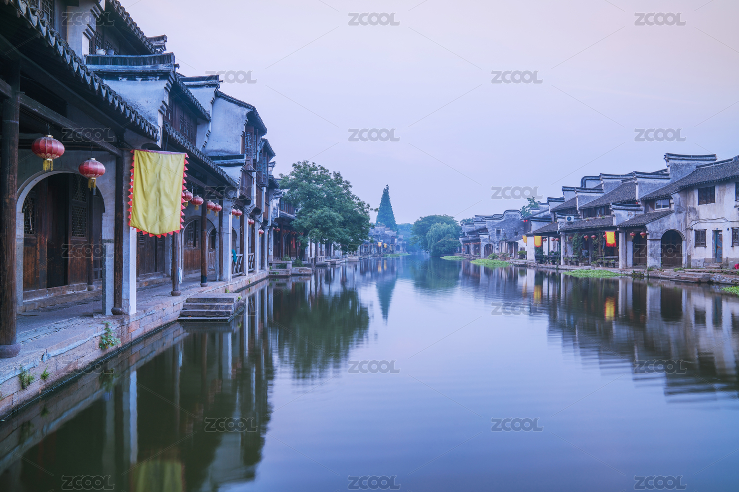 中国浙江杭州余杭塘栖镇广济桥的傍晚