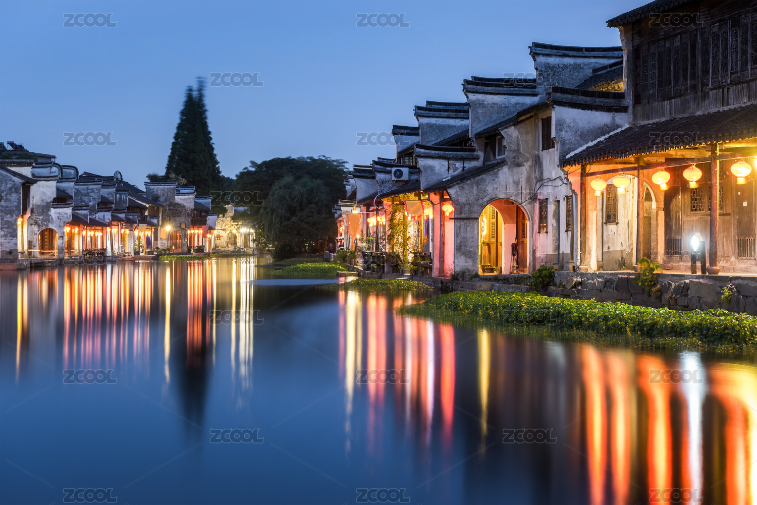 中国北京密云区古北水镇夜景银笺桥夜景小桥流水人家