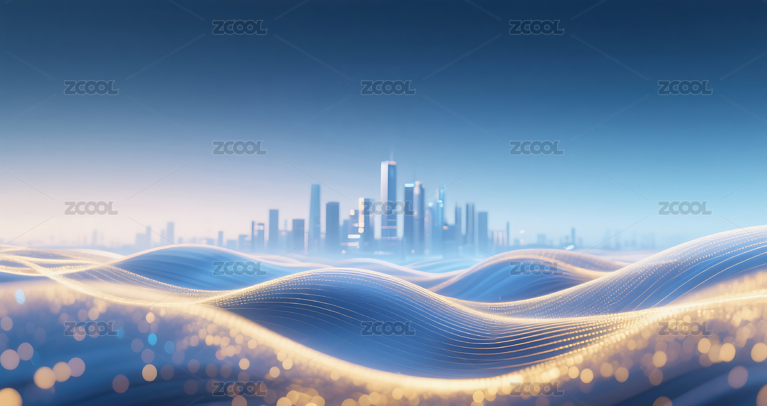 蓝色城市波浪背景图