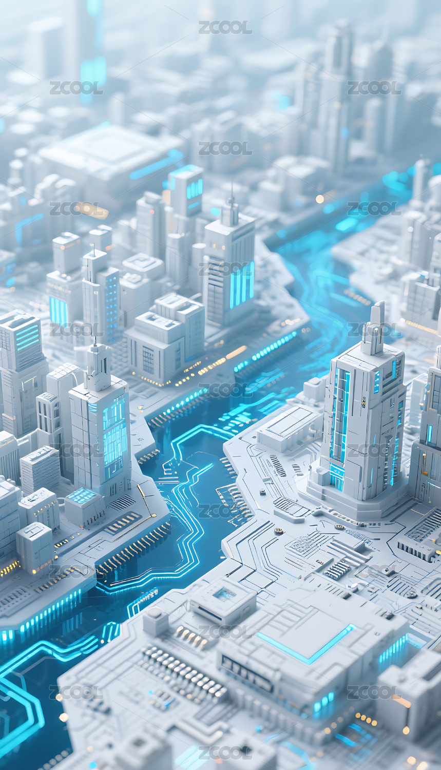 电路板上的蓝色繁华城市背景