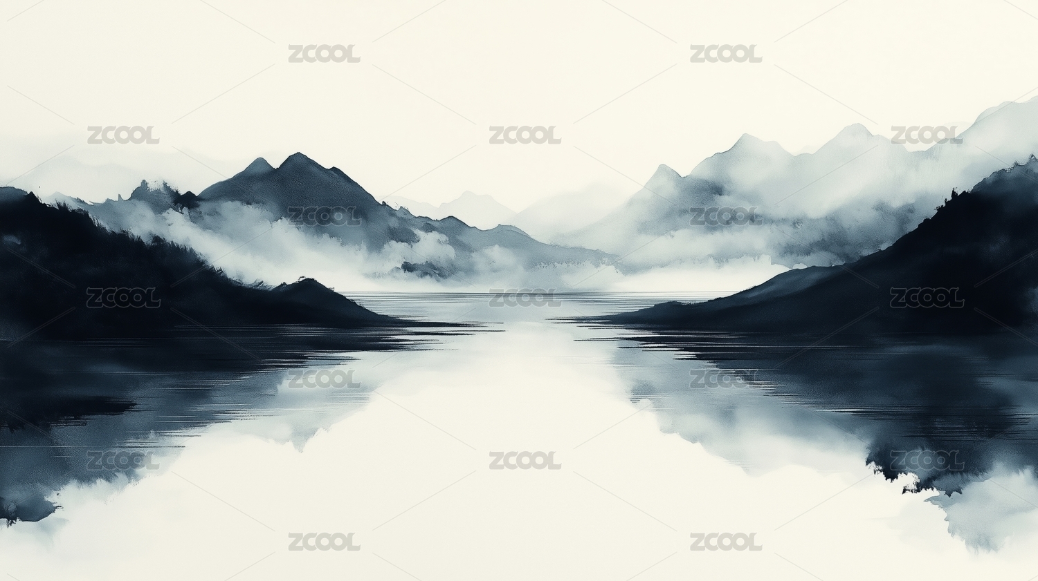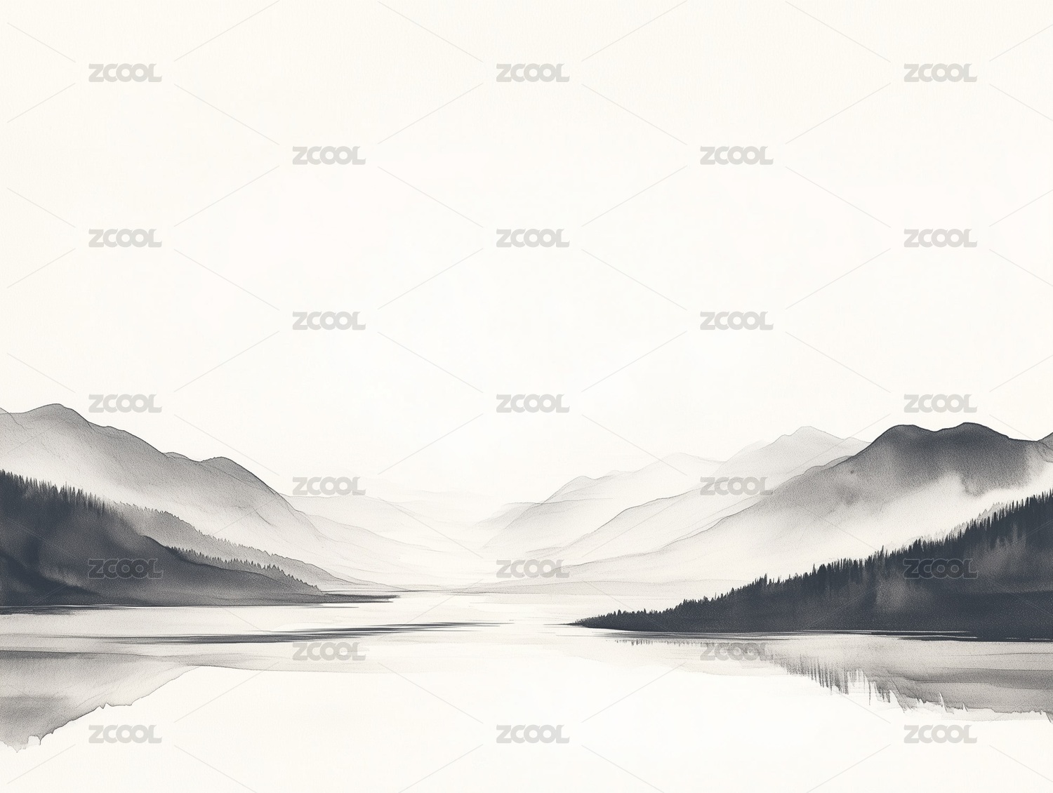 黑白水墨简约山水插画