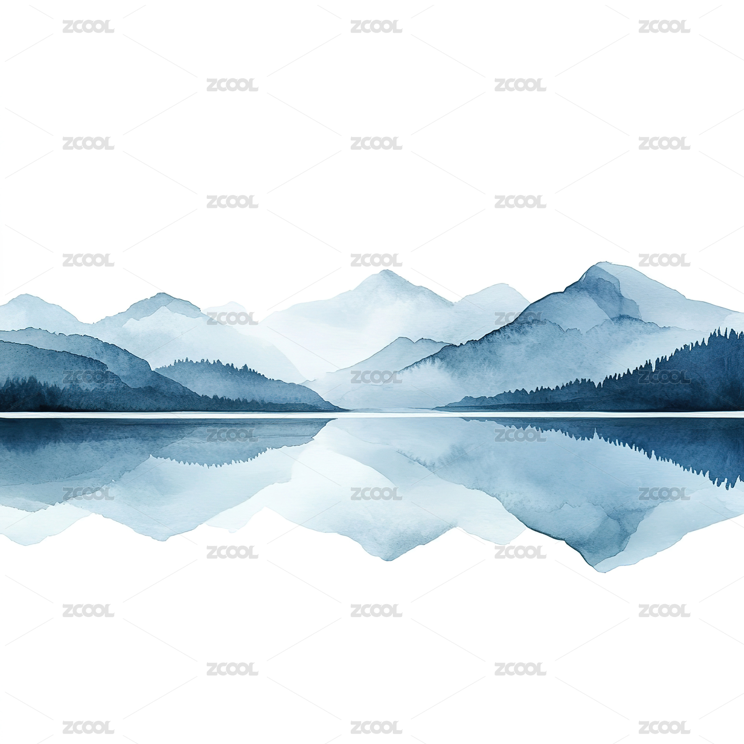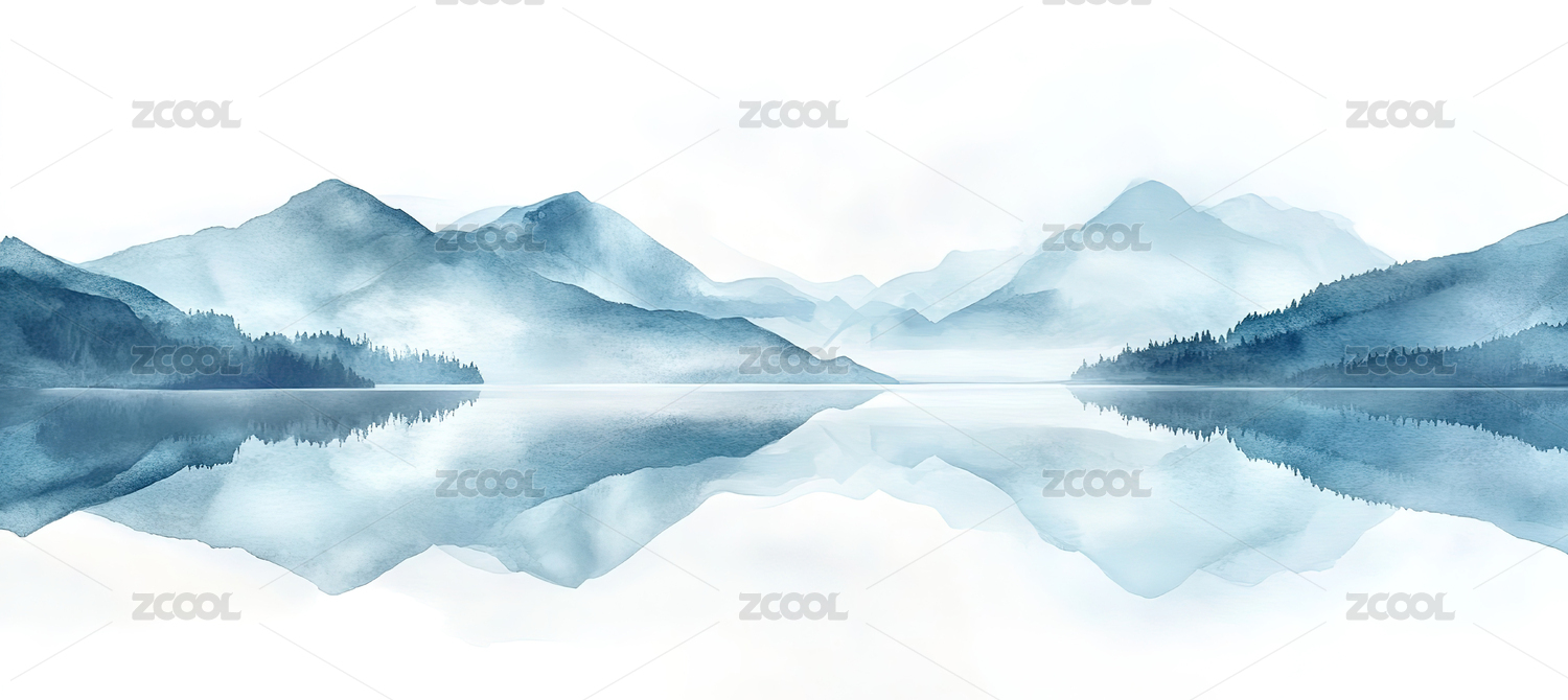 山水水彩风景插画