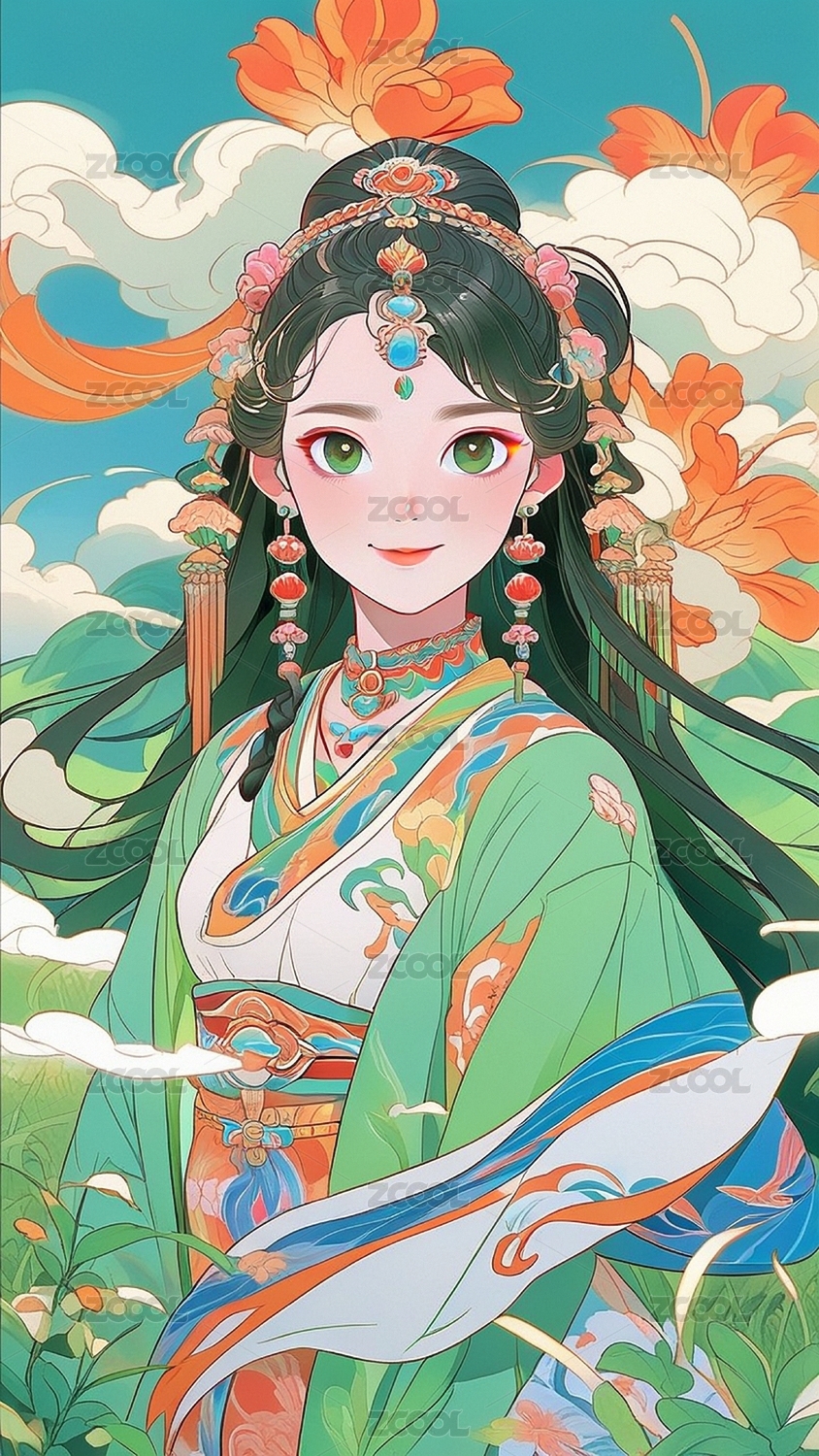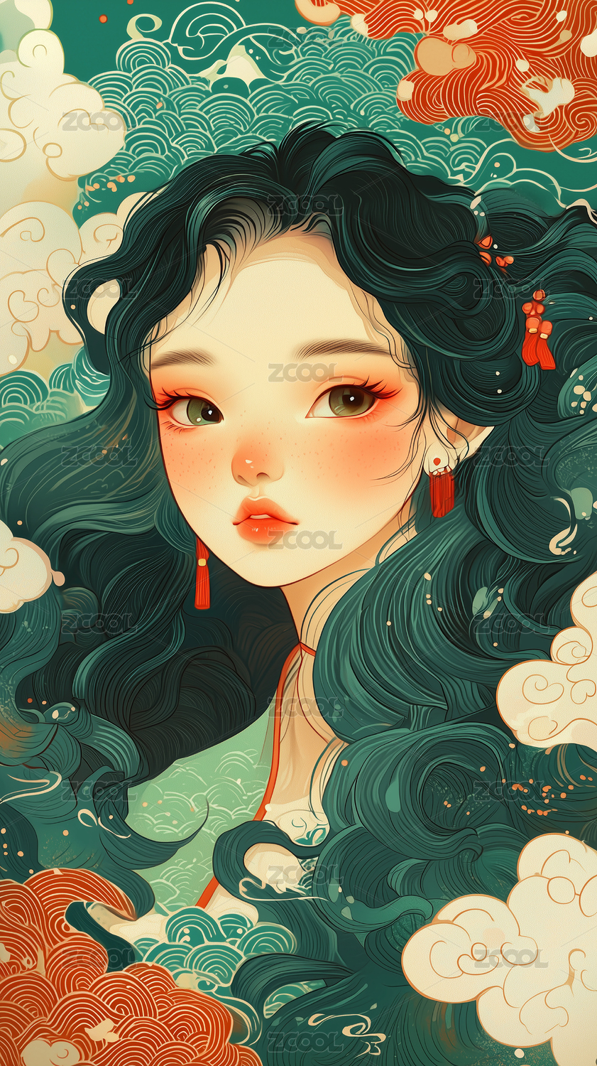 插画,中国风,美女,仙女,AIGCFG,国潮,复古,艺术,写意,意境