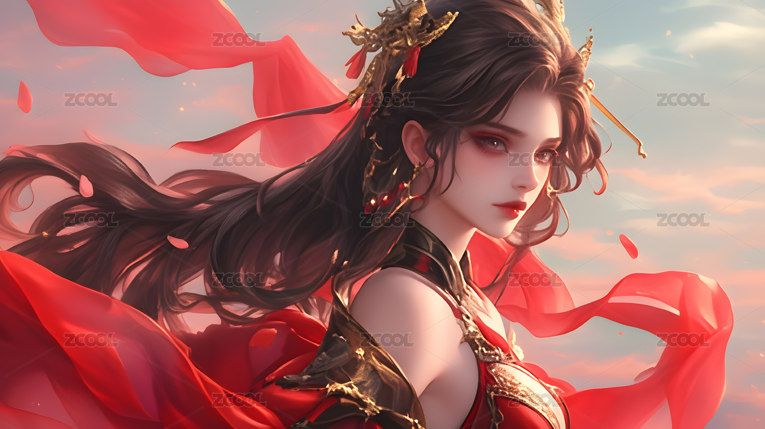 红衣金饰东方美人