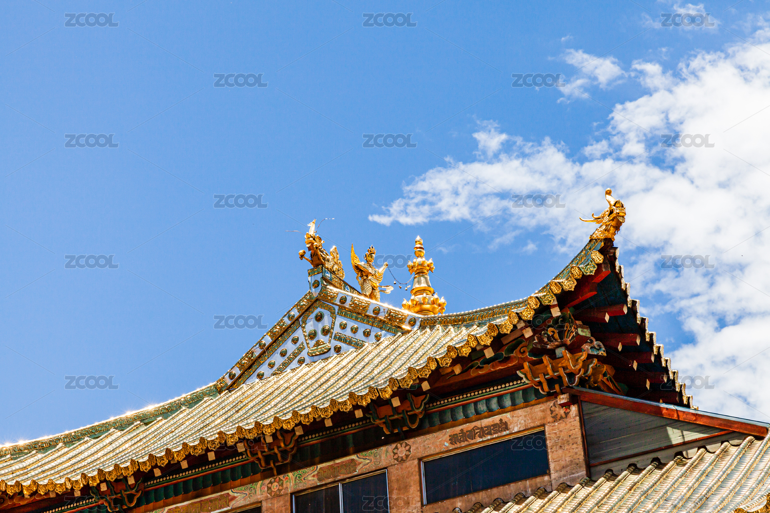 甘肃甘南郎木寺屋顶穹顶的金色装饰