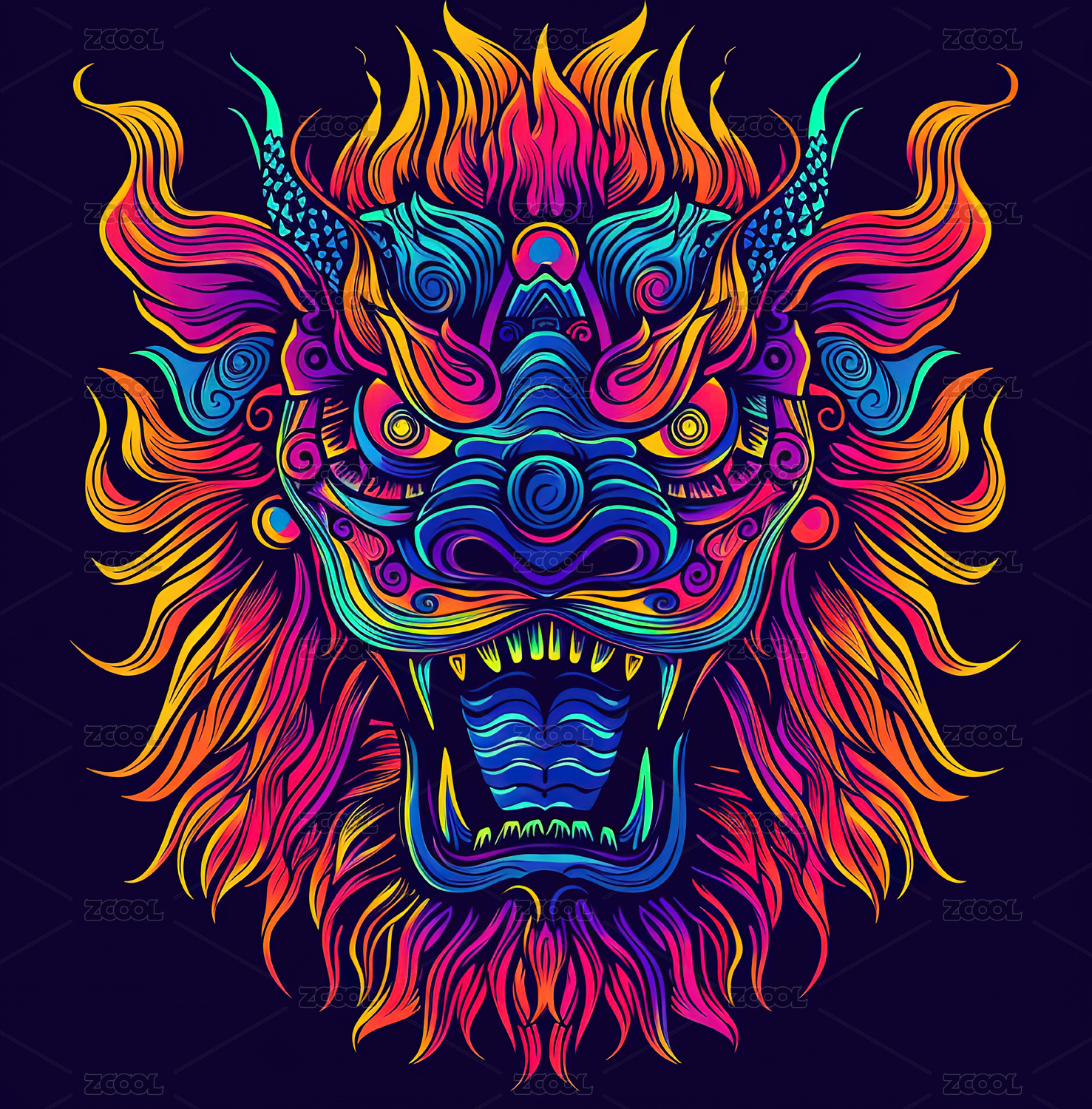 暗空间,渐变色,多色彩,图形创意,狗,光效设计,艺术,插图,图案设计,光