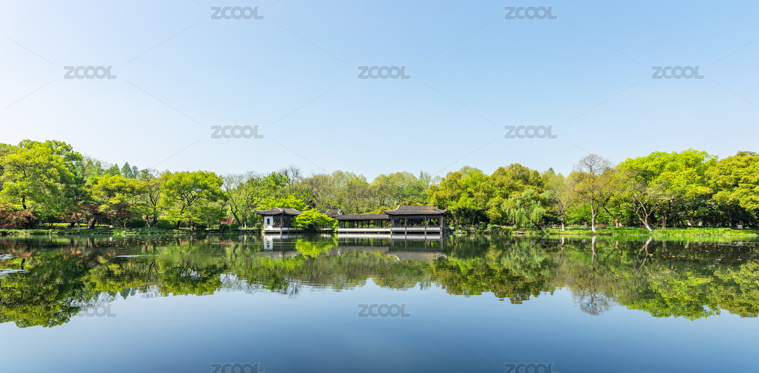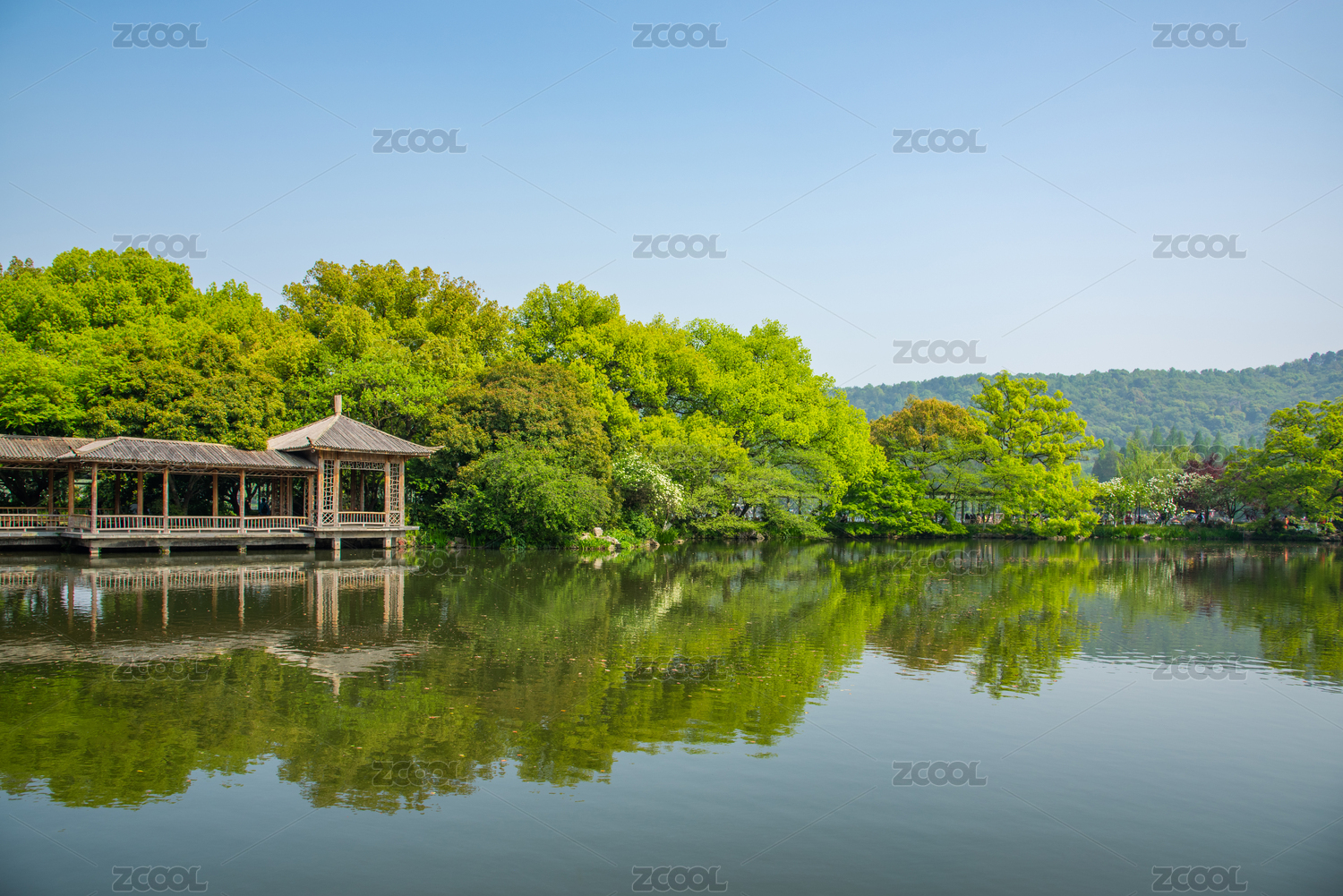 中国浙江杭州西湖茅家埠湖景湖畔树林