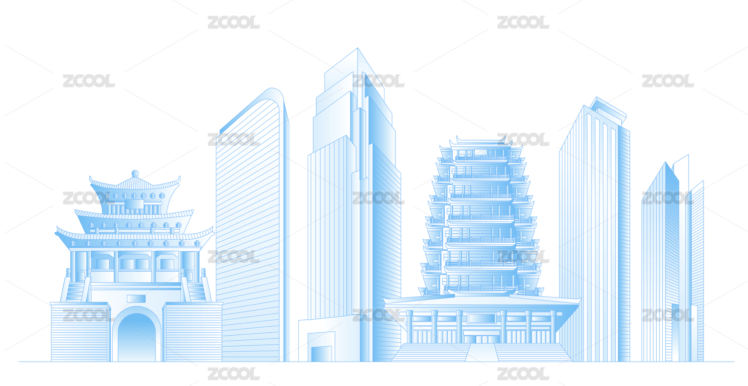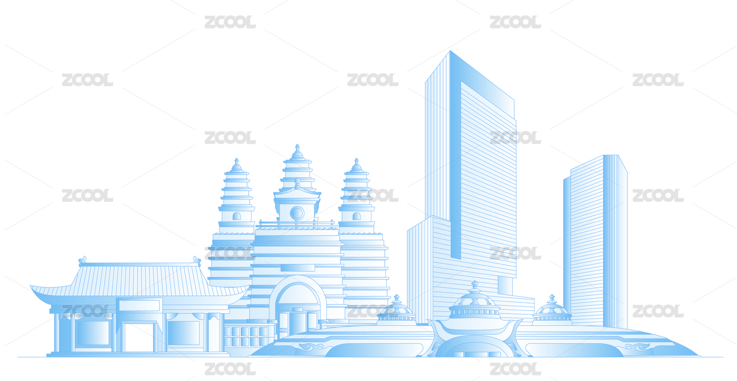 城市,蓝色,标志,建筑,插画,轮廓,线条,著名景点,设计,图像