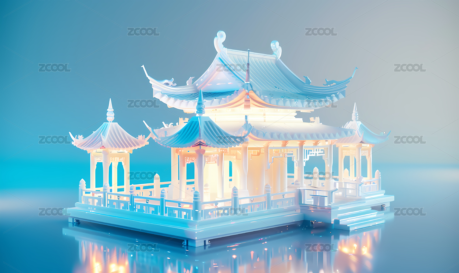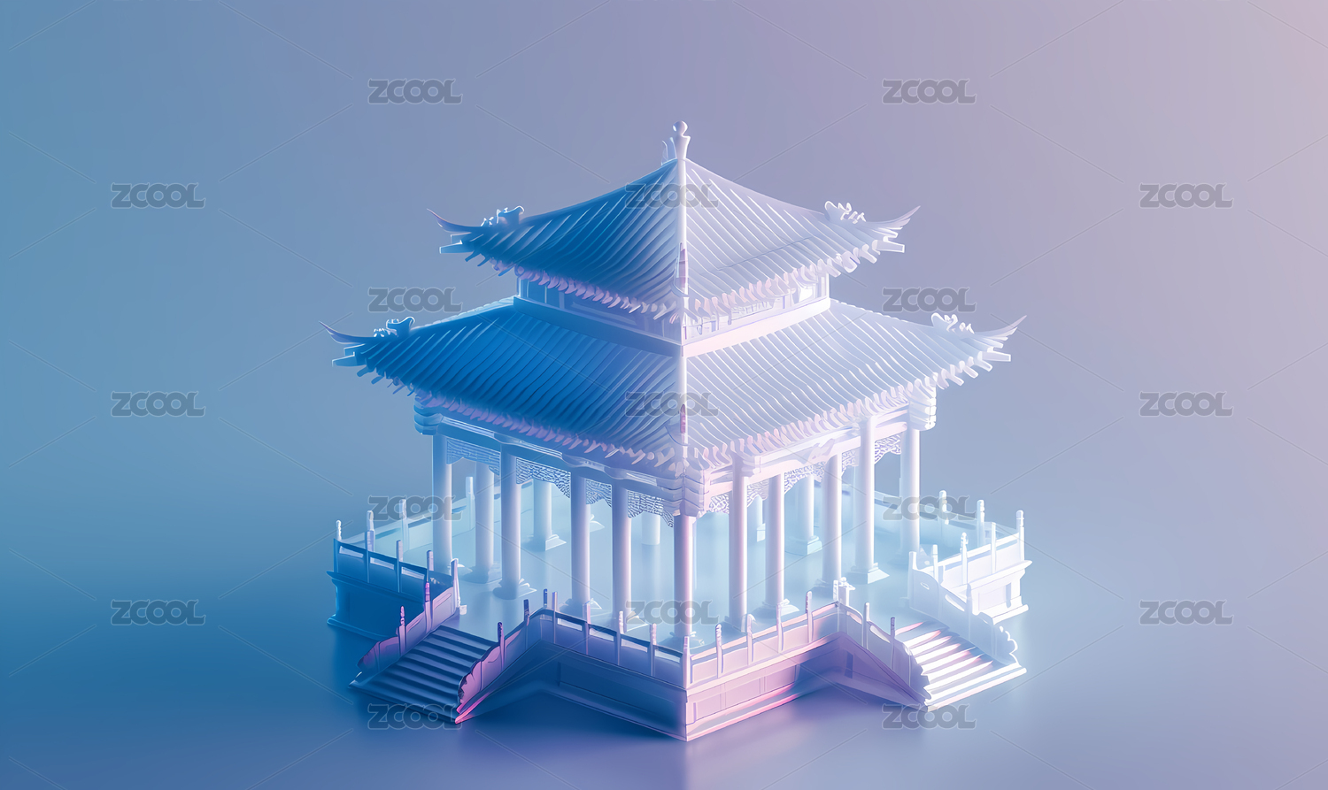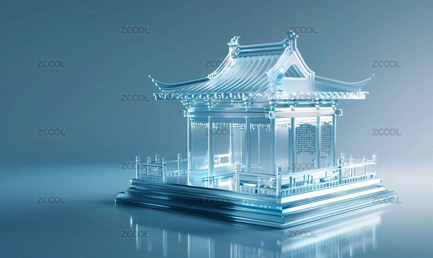 透明,古代,建筑,图标,三维图形,插画,蓝色,玻璃,创造力,元素