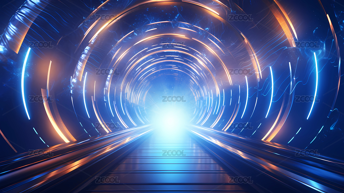 3D渲染科幻延伸蓝色未来科技感空间场景